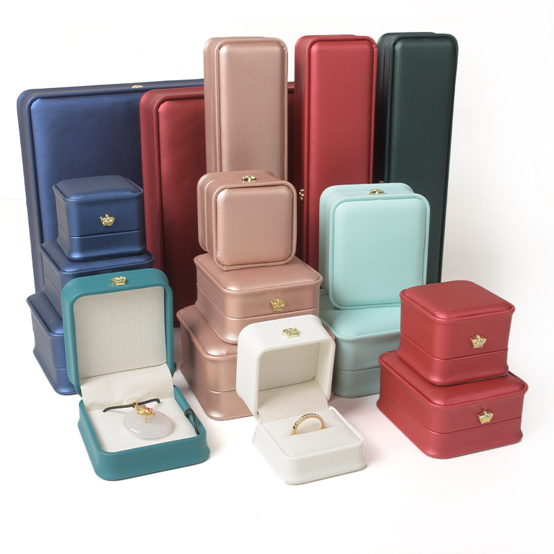 クラウン革ケースPUジュエリージュエリーアクセサリーウエストリングペンダントパールセットエメラルドゴールドシルバージュエリーケース