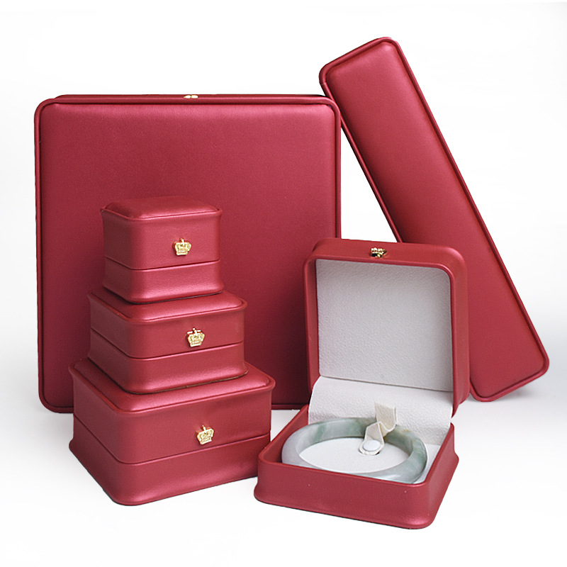ウエスト革のジュエリーの赤いギフトボックスのブレスレットの指輪のネックレスのペンダントの包装の真珠のセットの箱