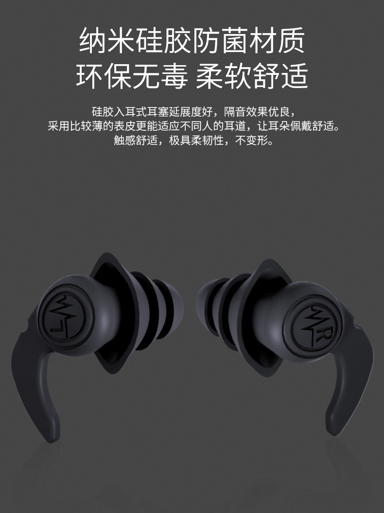 シリコン製防音・ノイズ低減耳栓、ノイズフィルター、睡眠・水泳用防水、三層構造、静音、高効率、高ノイズ低減率
