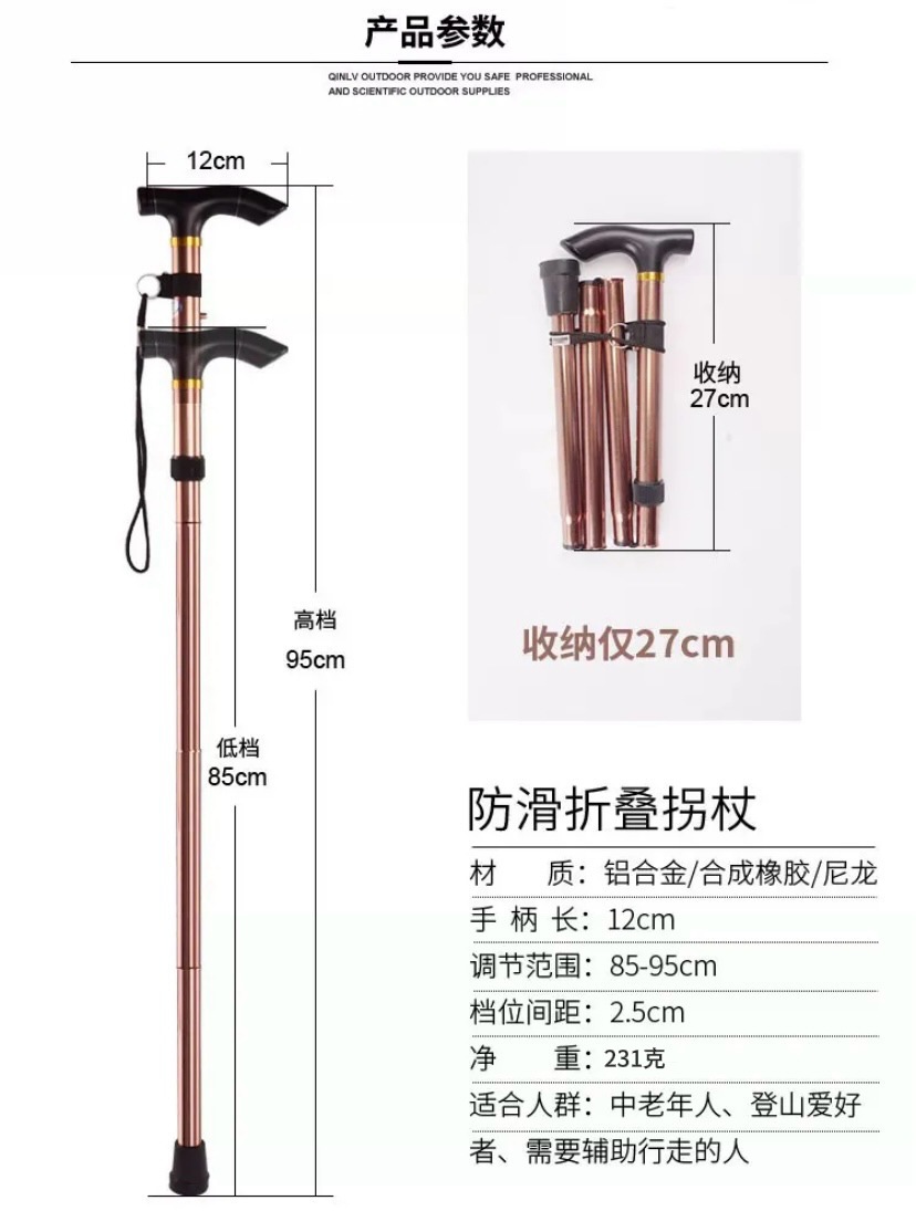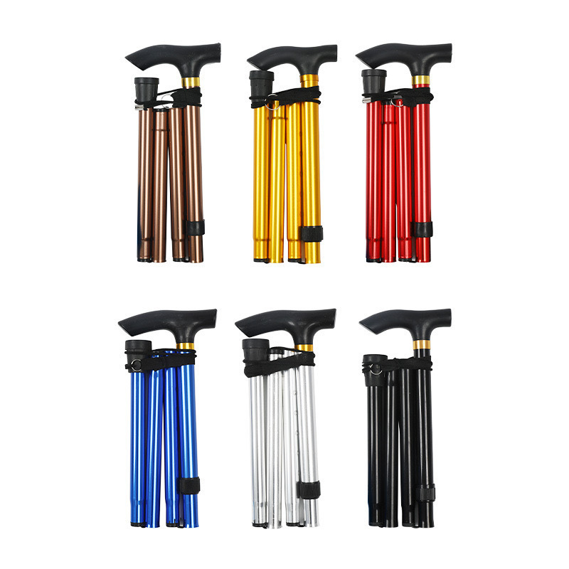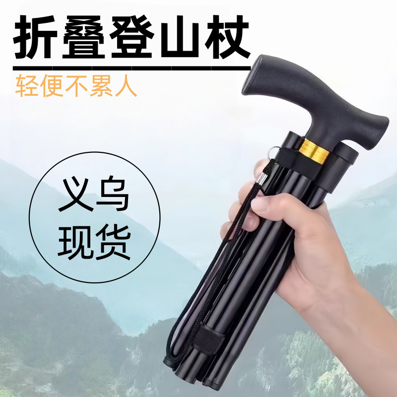 アルミ合金登山杖伸縮折り畳み登山杖滑り止め杖高齢者補強調整可能5本杖