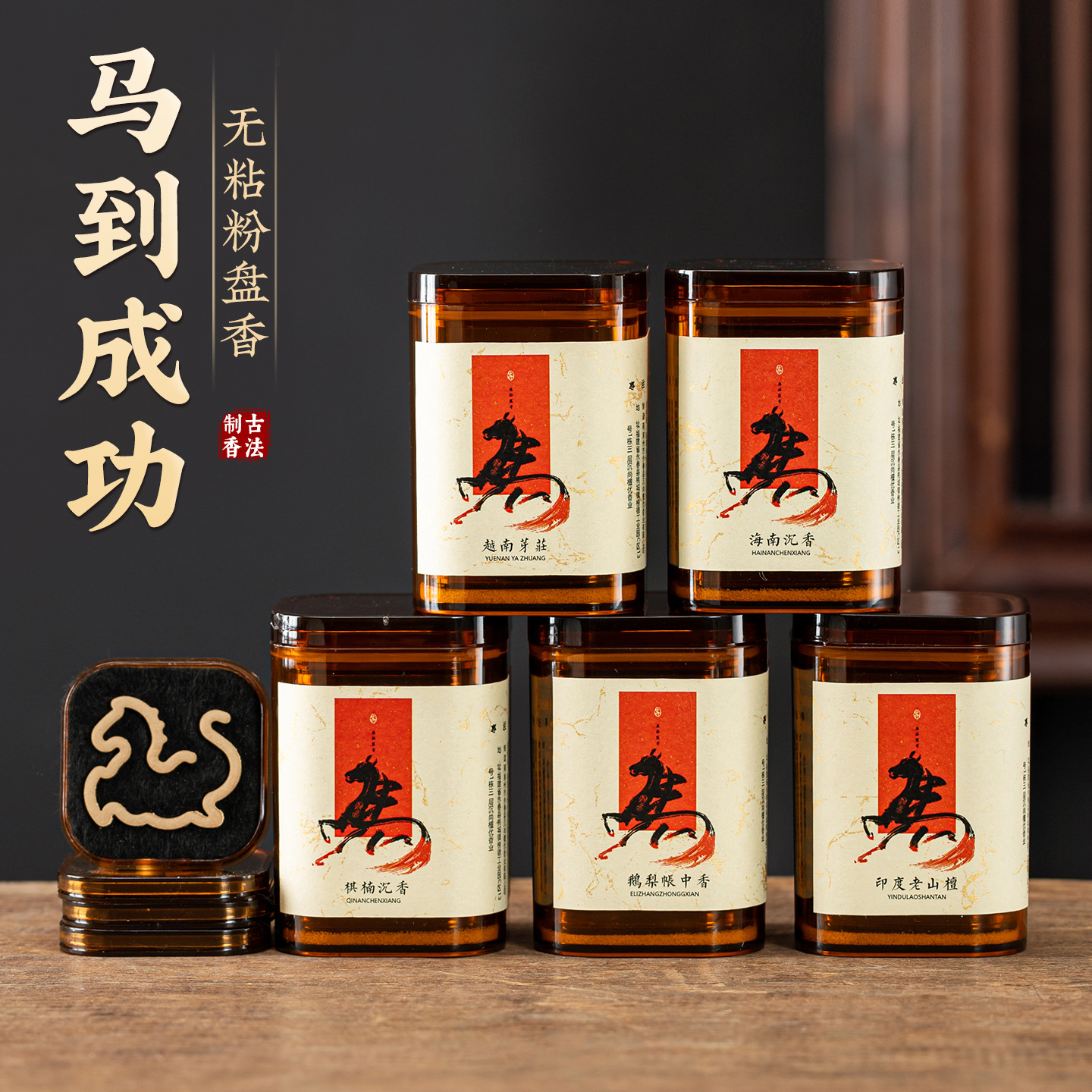 马年马型无粘粉天然盘香鹅梨帐中香老山檀香海南沉香家用室内香薰