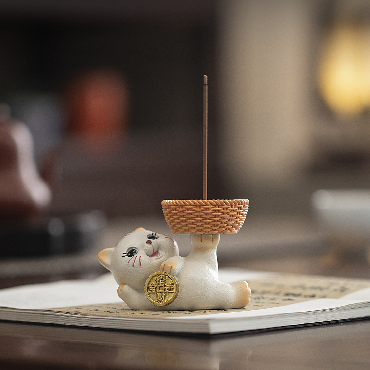 招财猫不落灰香插摆件香炉家用室内熏香桌面线香香座香托盘香薰炉