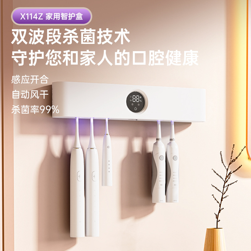 跨境牙刷消毒器紫外线感应杀菌盒电动烘干仓免打孔置物架子单双人