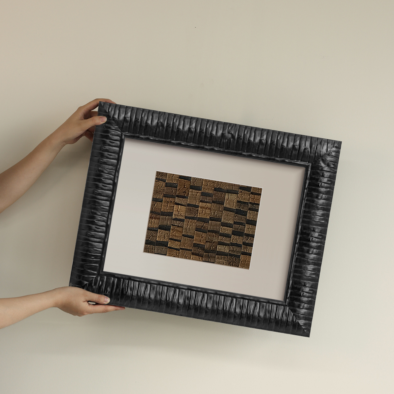 レトロな無垢材の額縁、額装フォトフレーム、装飾的な手作りのログスタイルの油絵、空のフレーム、リビングルームの壁掛け卸売