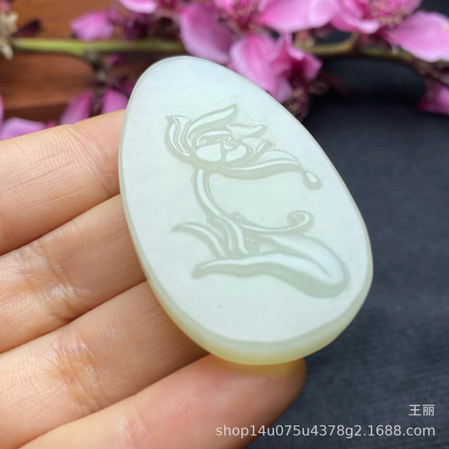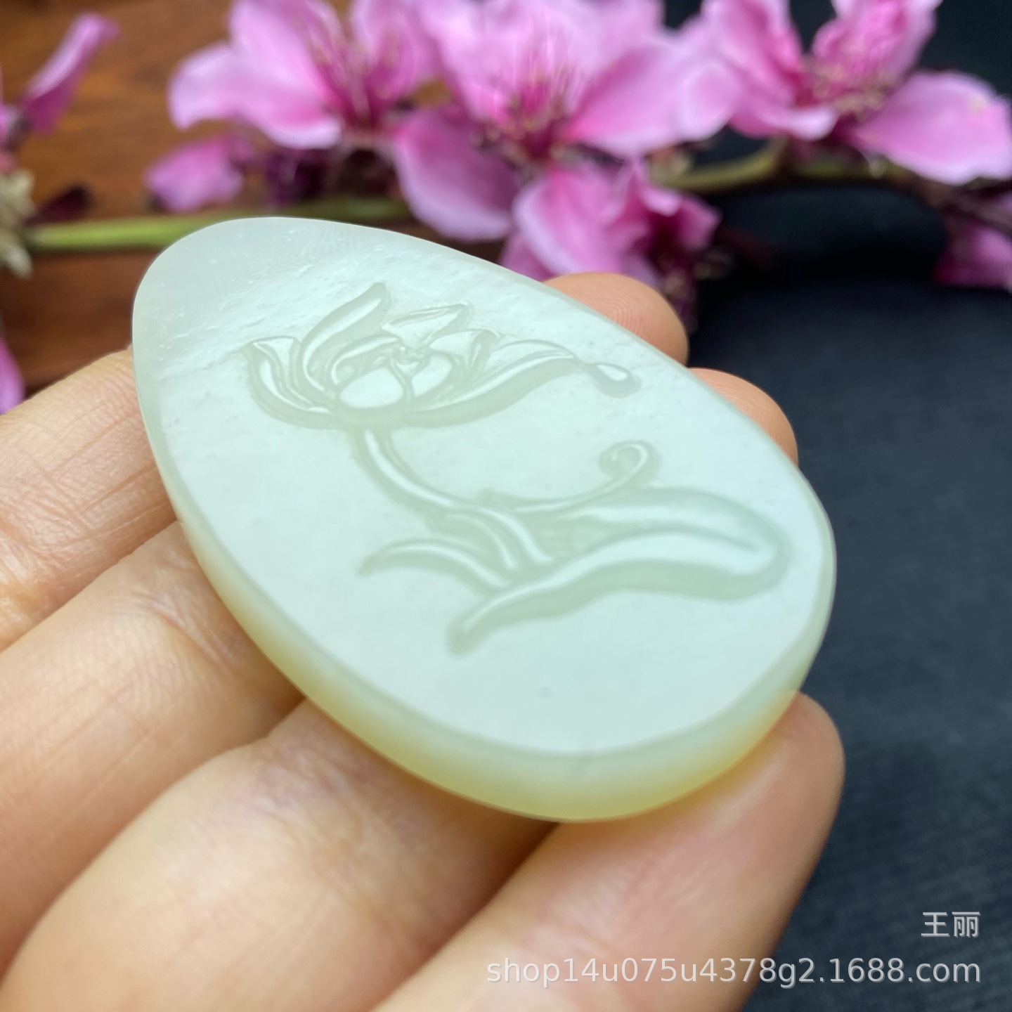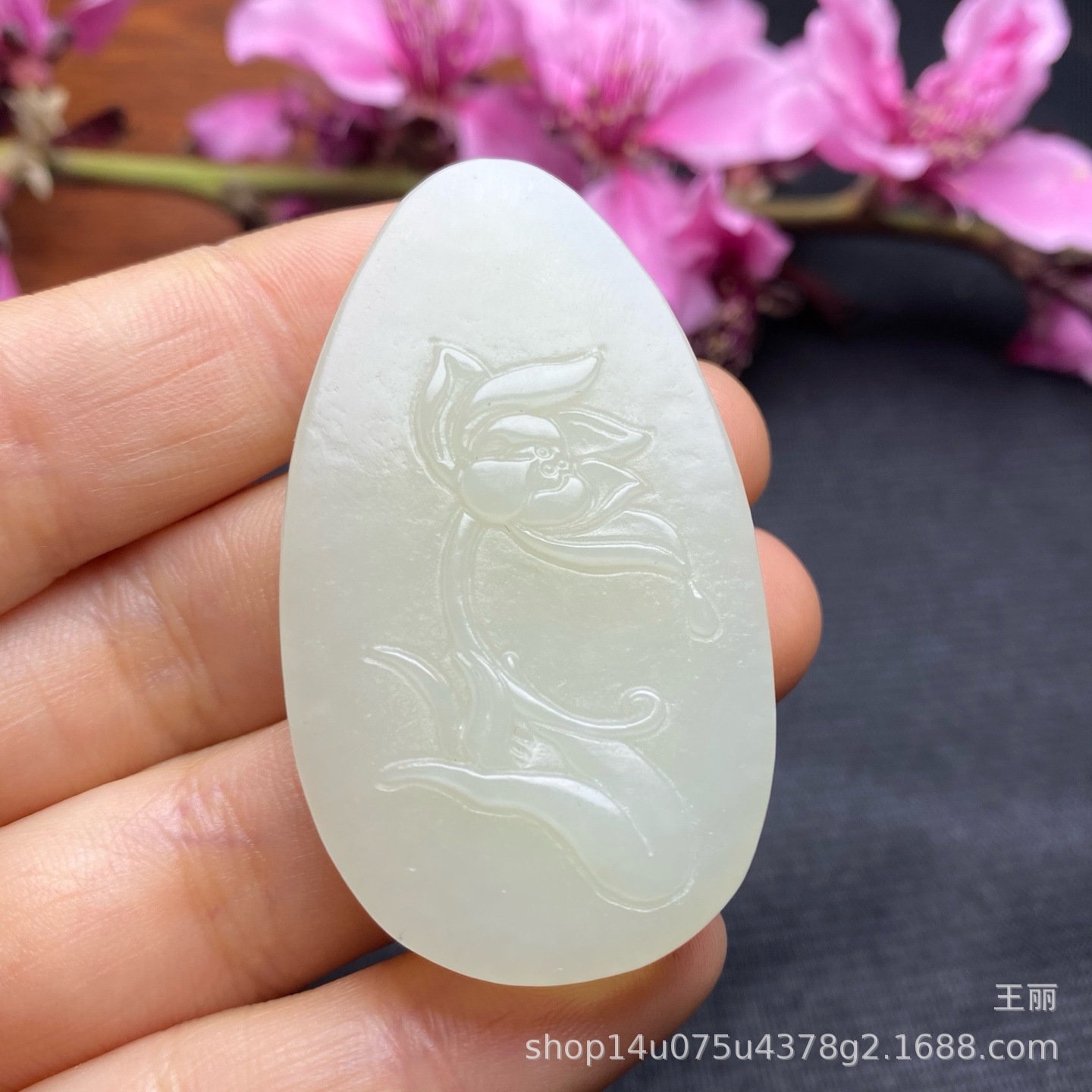 天然の新疆と田玉の青い白玉は自信を持って仏の手の蓮の花の玉を掛けます。
