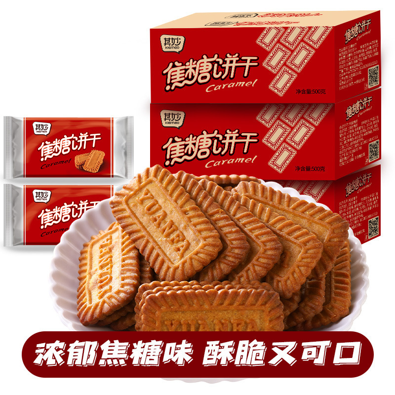 【特価】キャラメルクッキー全箱卸売り朝食クッキーキャラメル味独立小包装ネット赤レジャー間食