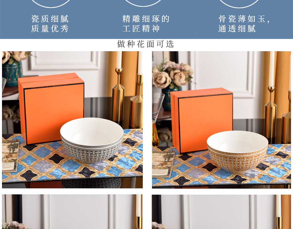 ヨーロッパの家庭用陶磁器の碗のスープの碗のセットのギフトボックスの高い足のご飯の碗のスプーンの精巧で豪華な贈り物の工場の卸売り