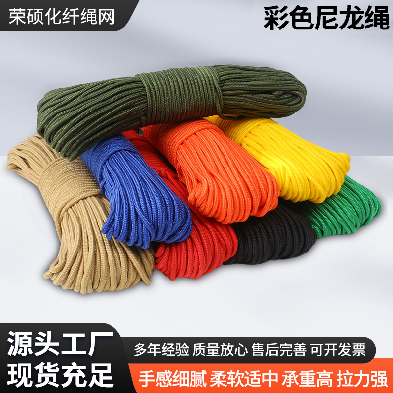 カラフルなナイロンロープ手織り屋外テント結束ローププルロープ口ロープ風ロープメーカー卸売マルチカラー