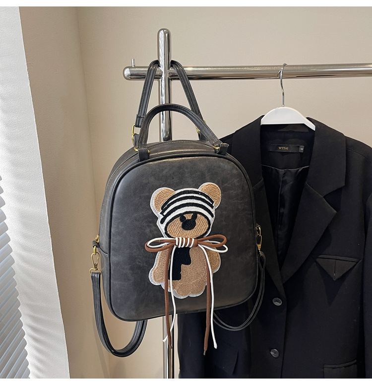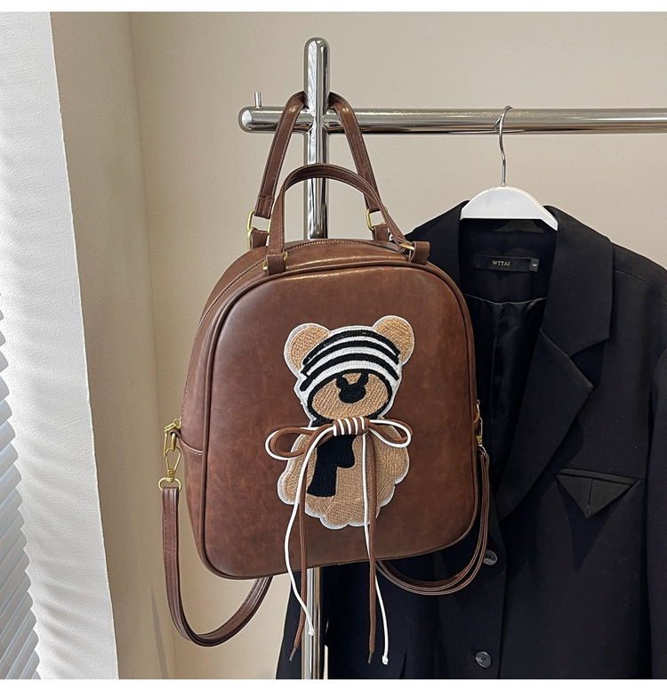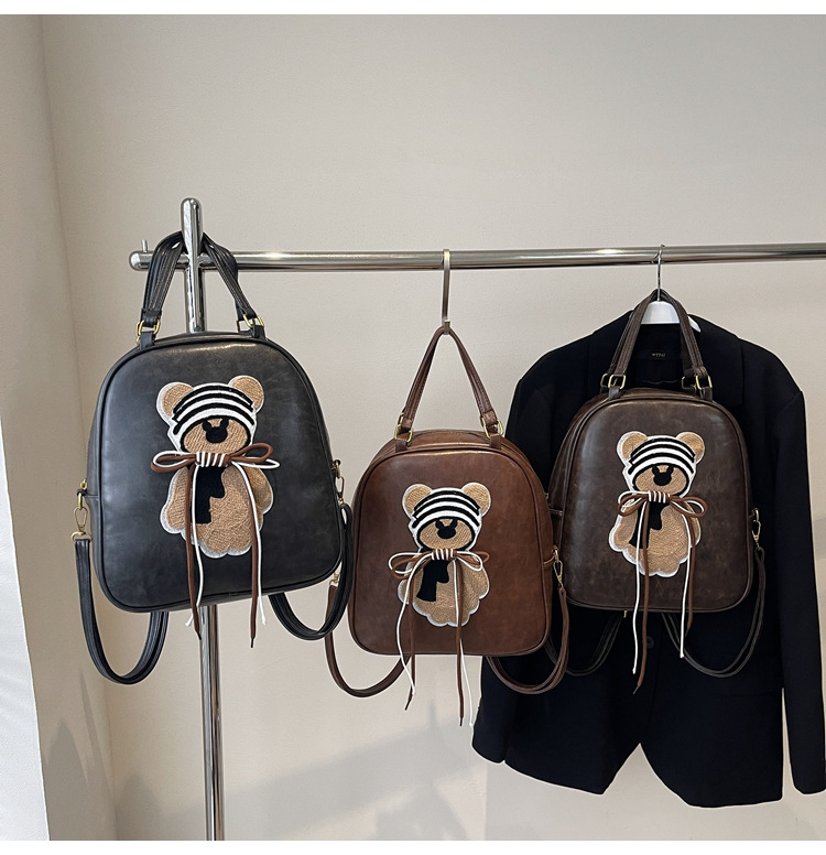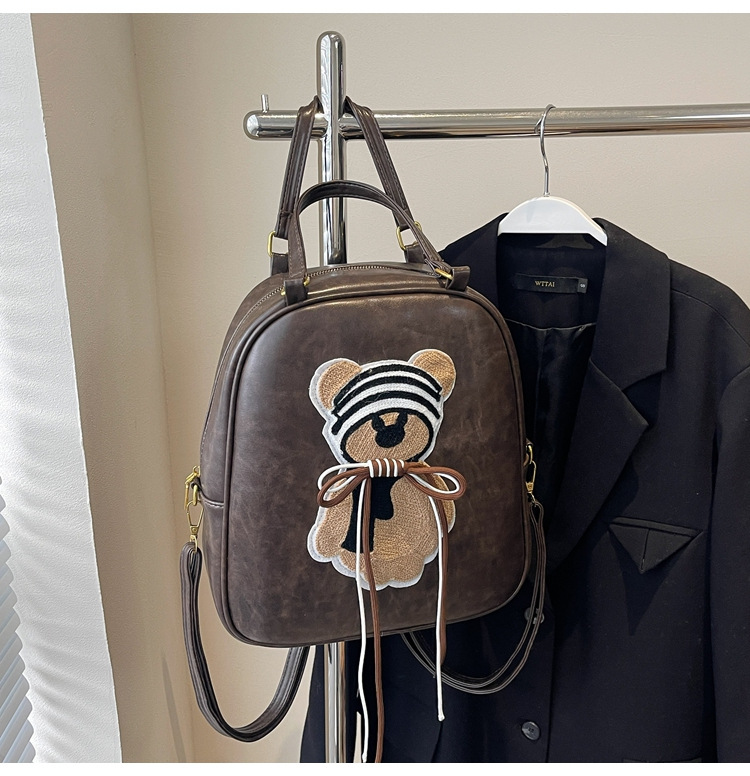 かわいいクマのハンドバッグ、女性用高級感のあるレトロなショルダーバッグ、2025年新作、多用途の通勤バッグ