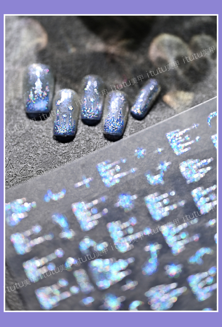 Itutuの新商品の輝く星河の箔押しのネイルシールの七色のレーザーの星のチェーンの銀色の小さい図案の1235