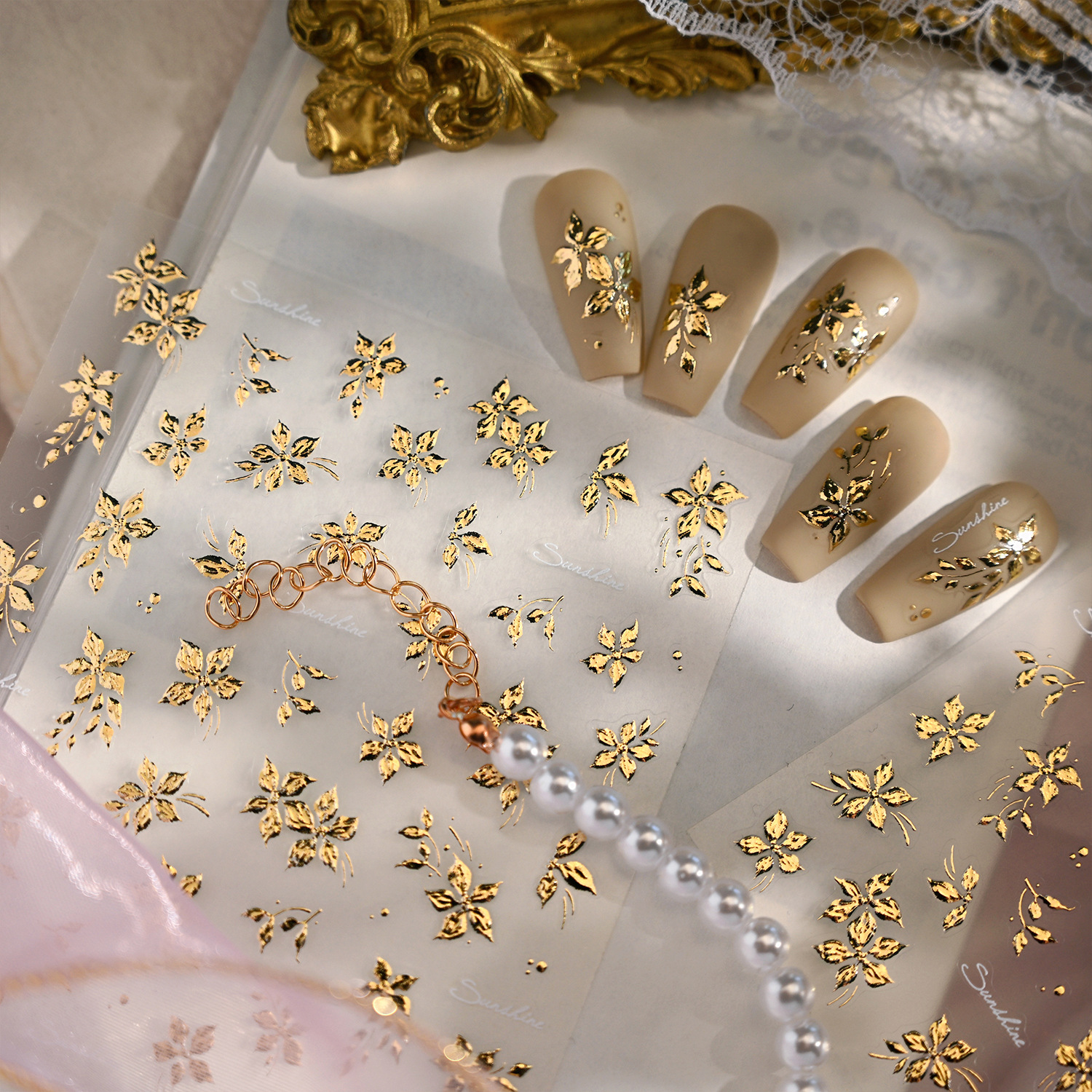 TENSOR新中式轻奢五瓣花美甲贴纸m1327复古精致烫金花卉指甲贴