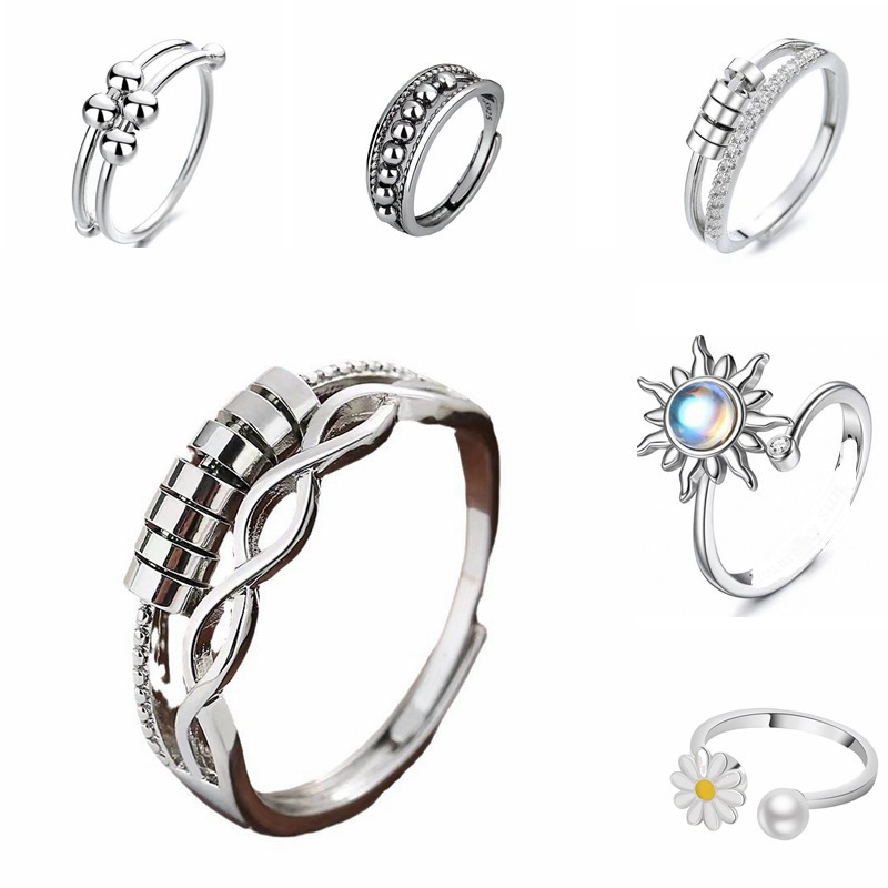 欧米の新型アマゾンは微動の玉の回転の指輪の女性の創意の指の環を販売して圧力の焦慮の女性の手の装飾品に抵抗します。