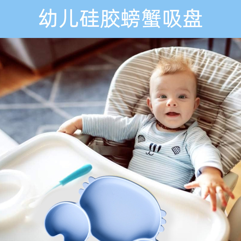 工場直売越境シリカゲルのカニの食事皿吸盤の子供の子供の漫画の食事皿は口を囲むことを防いでいます。