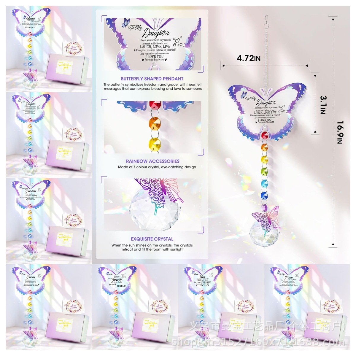 クロスボーダー新品レディースお誕生日プレゼント蝶々形ペンダントアクリル車載ストラップ掛け飾りママ蝶ギフト