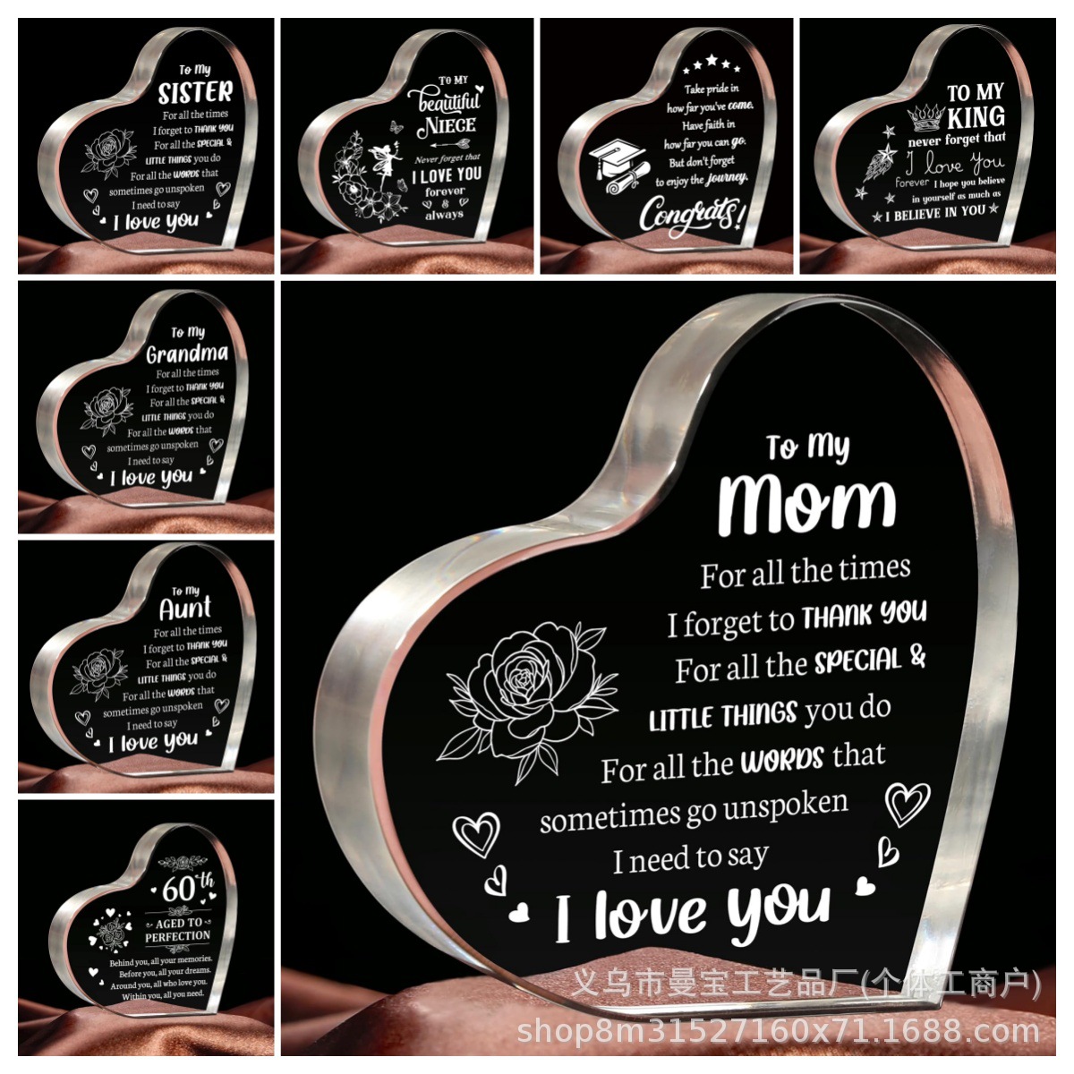 国境を越えた新しい女性の誕生日プレゼント、愛の形をしたプラーク、アクリルデスクトップ装飾装飾品、母親のテーブルセッティング用