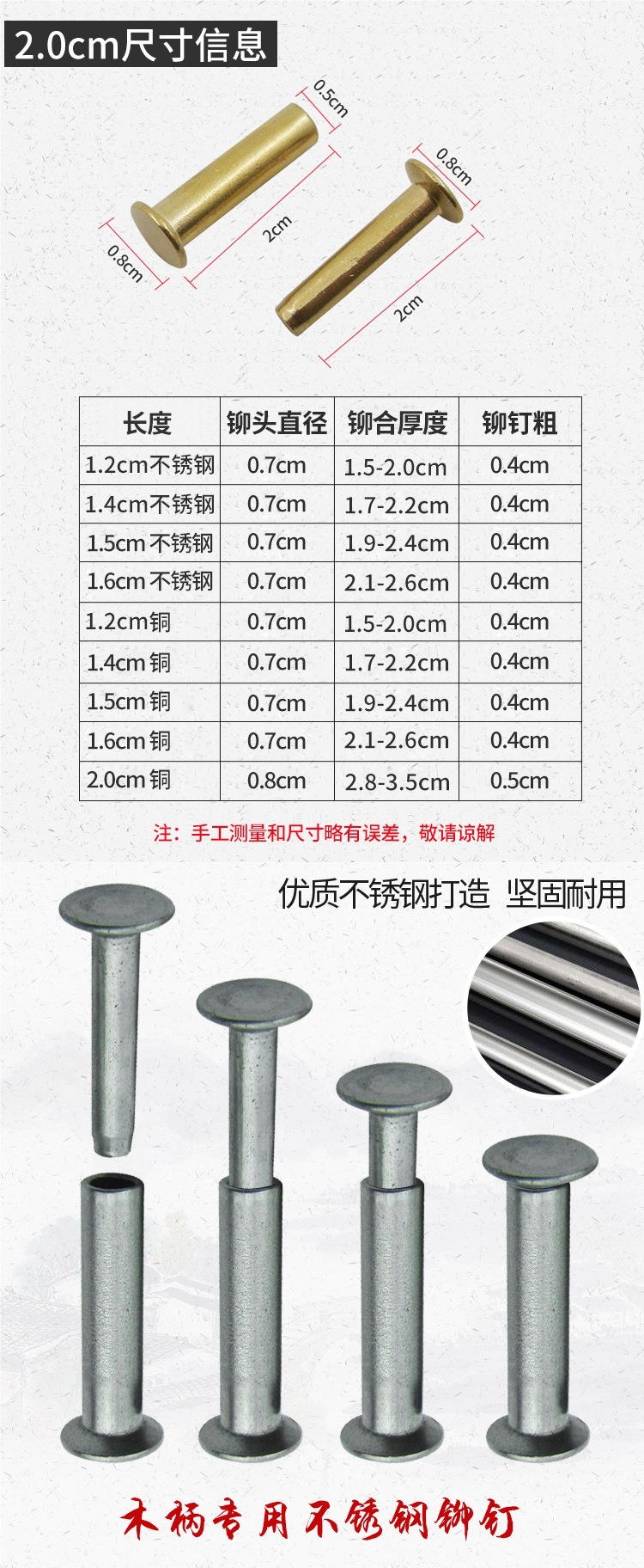 真鍮子母リベット手作り包丁クリップ柄ペアロックリベットDIYカッターハンドル固定部品