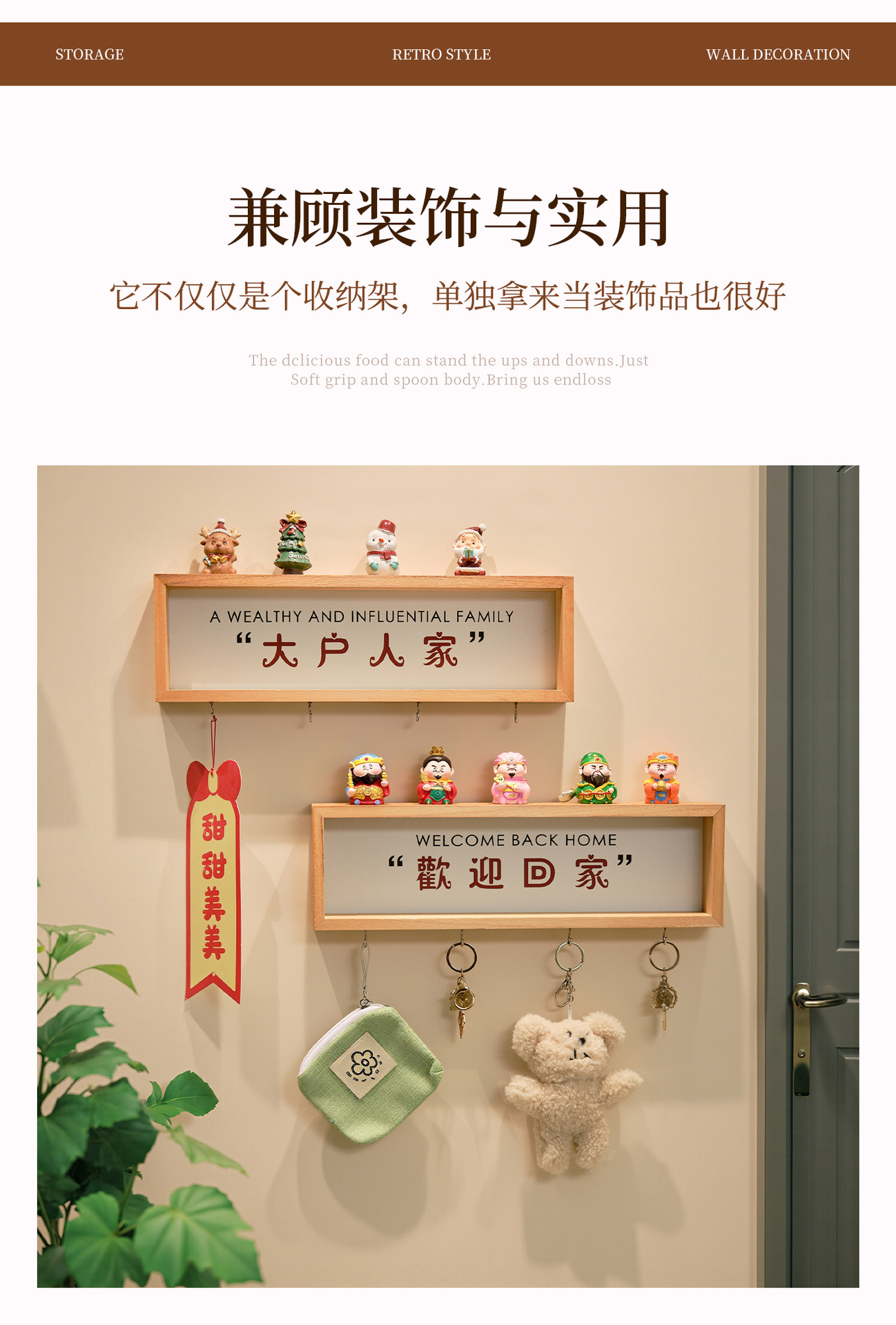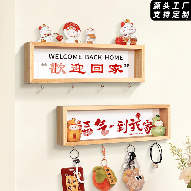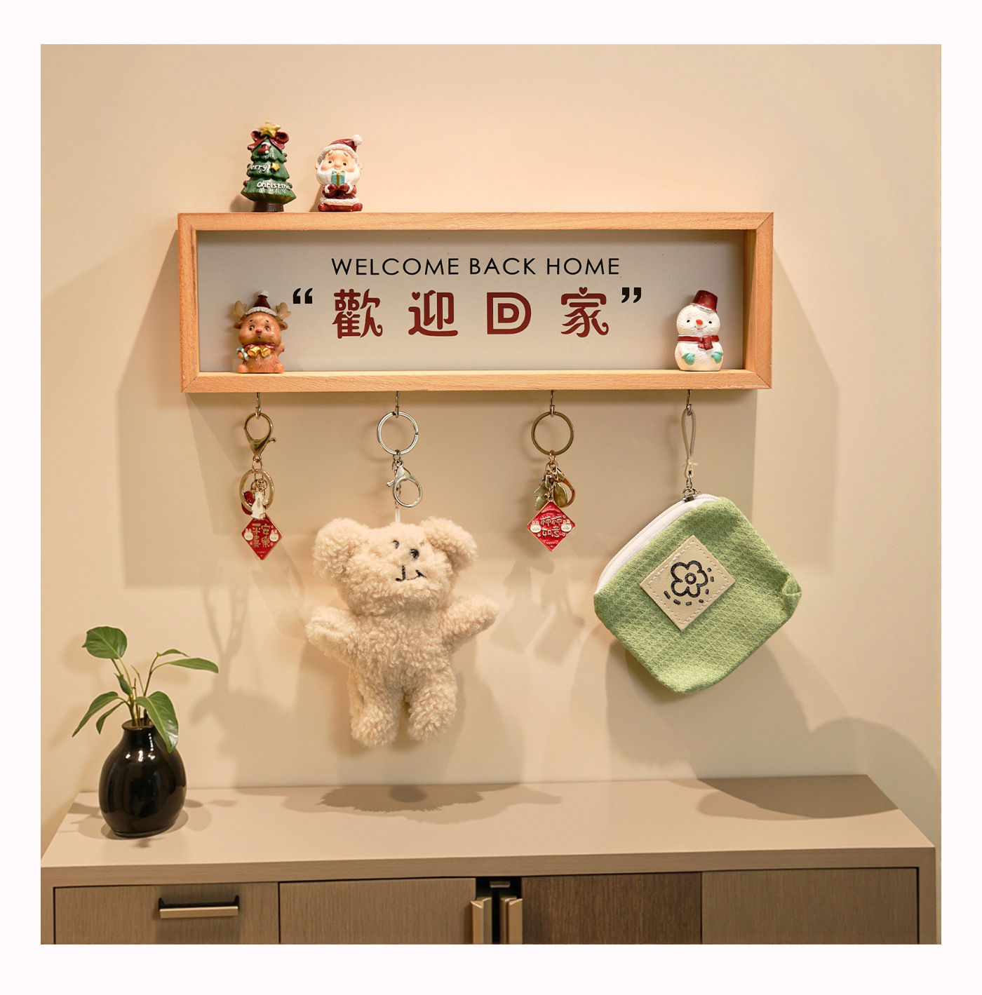 入户玄关装饰摆件欢迎回家新家乔迁新居钥匙收纳墙面免打孔置物架