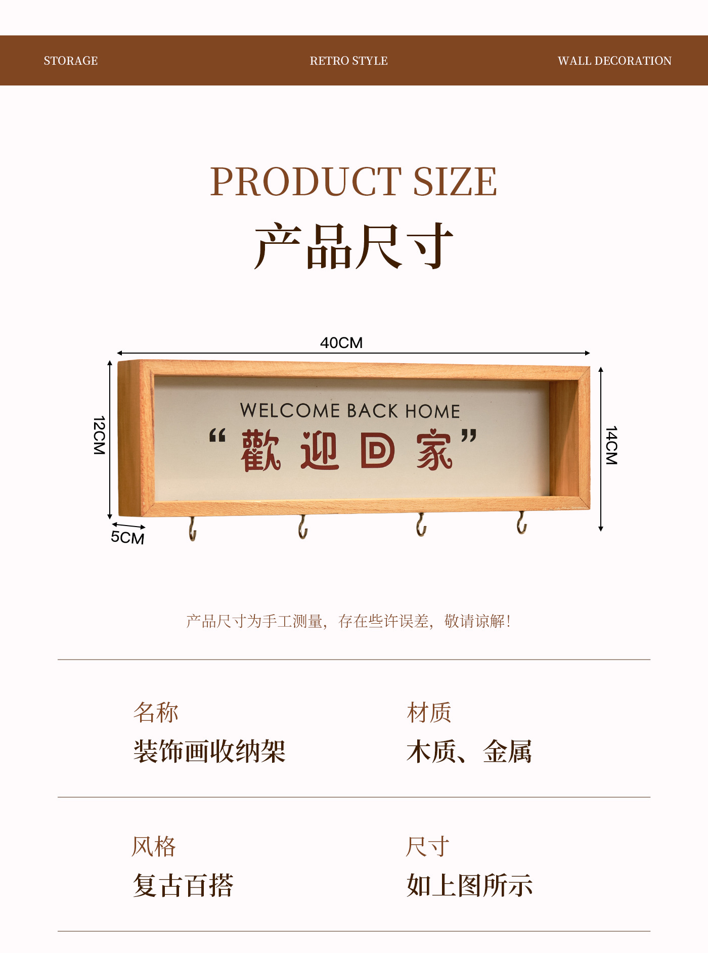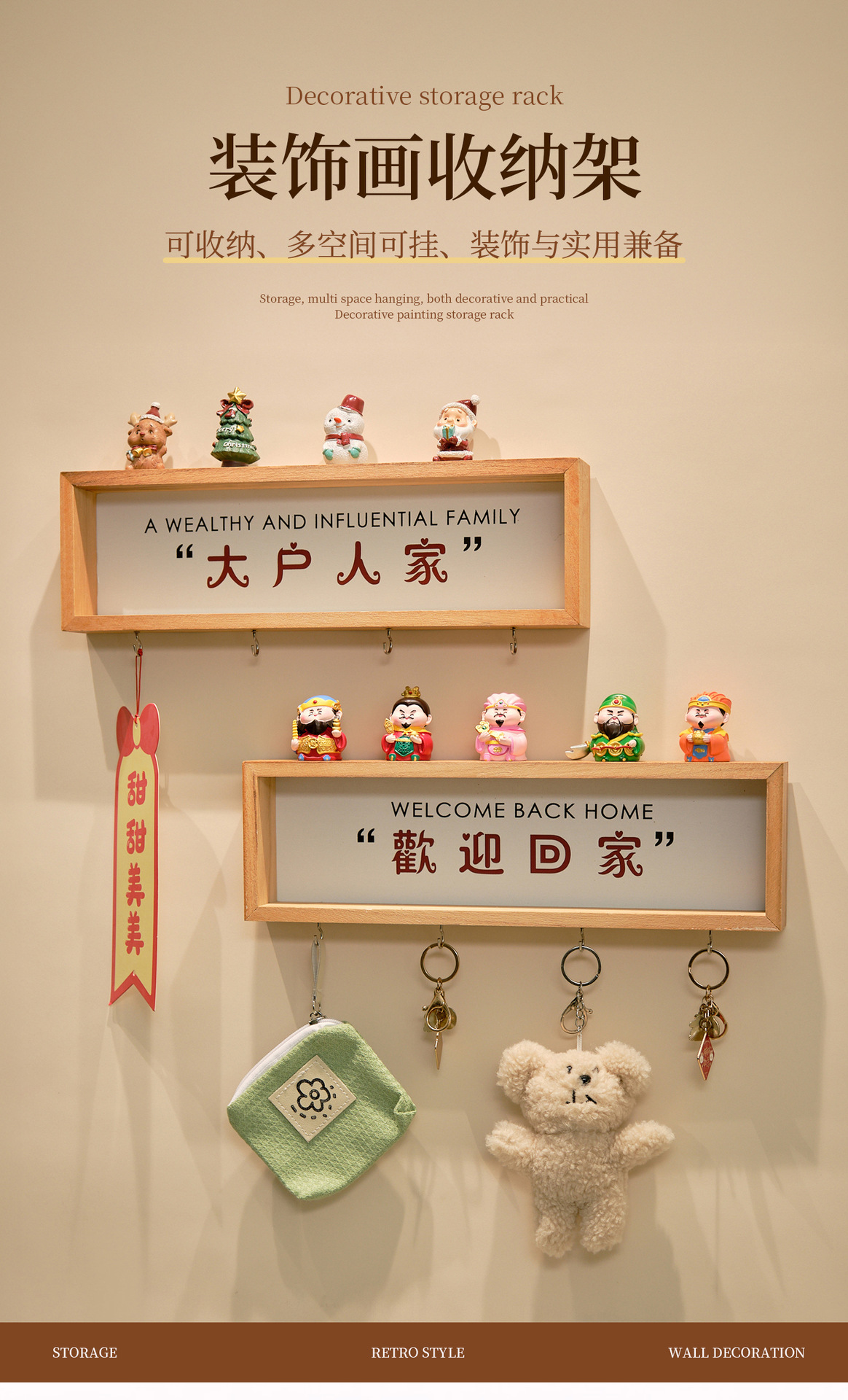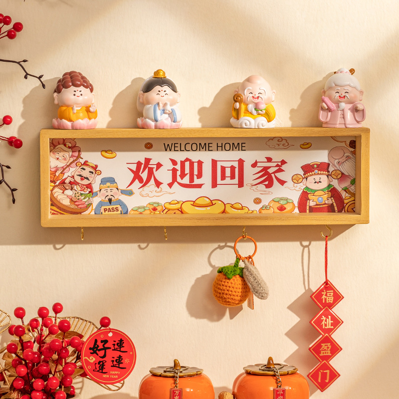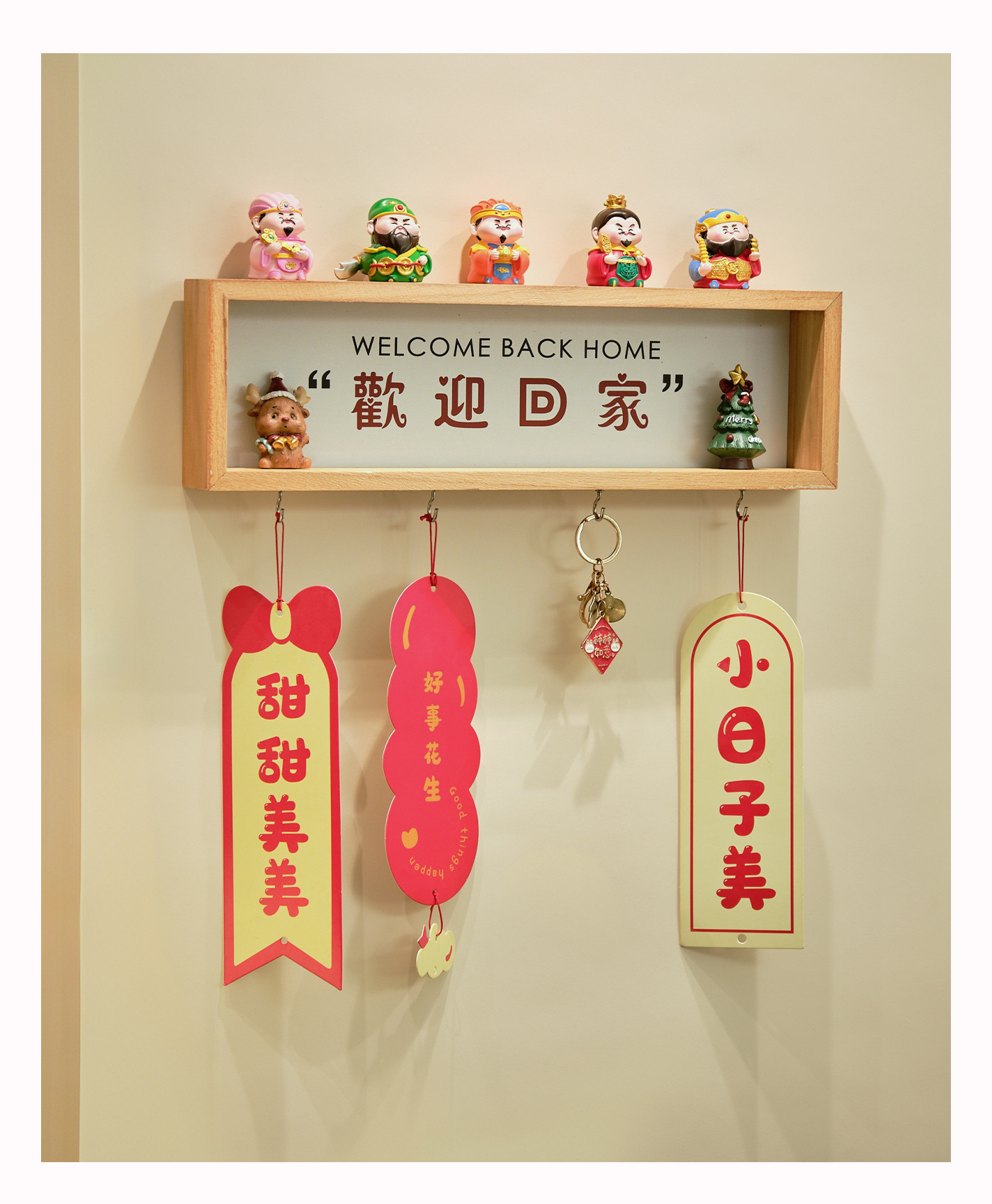 入户玄关装饰摆件欢迎回家新家乔迁新居钥匙收纳墙面免打孔置物架