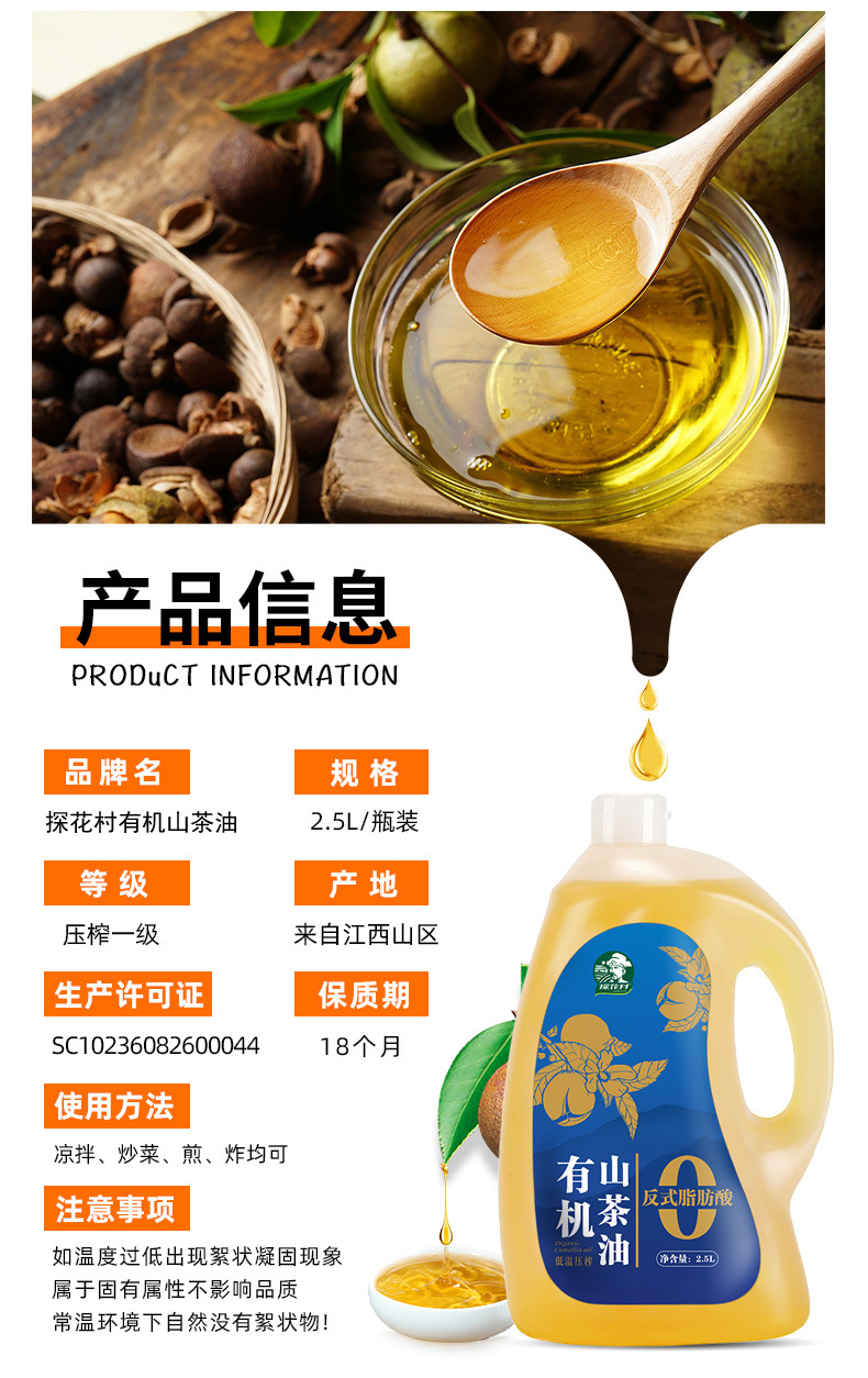 小果油茶籽油特级双有机山茶油1.25升低温冷榨茶籽油零反式脂肪酸