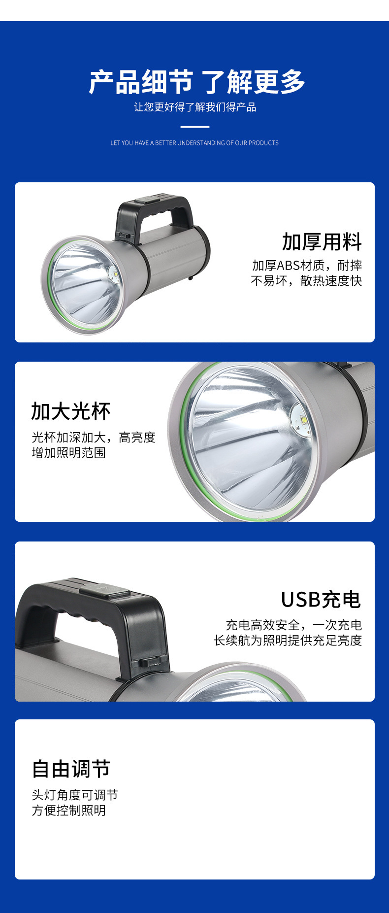Led強光手提げサーチライト屋外遠射充電式キャンプ探険灯釣り多機能緊急灯