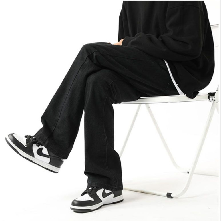 2025黒のストレートジーンズの男性カジュアルブランドのごろつきがかっこいいです。