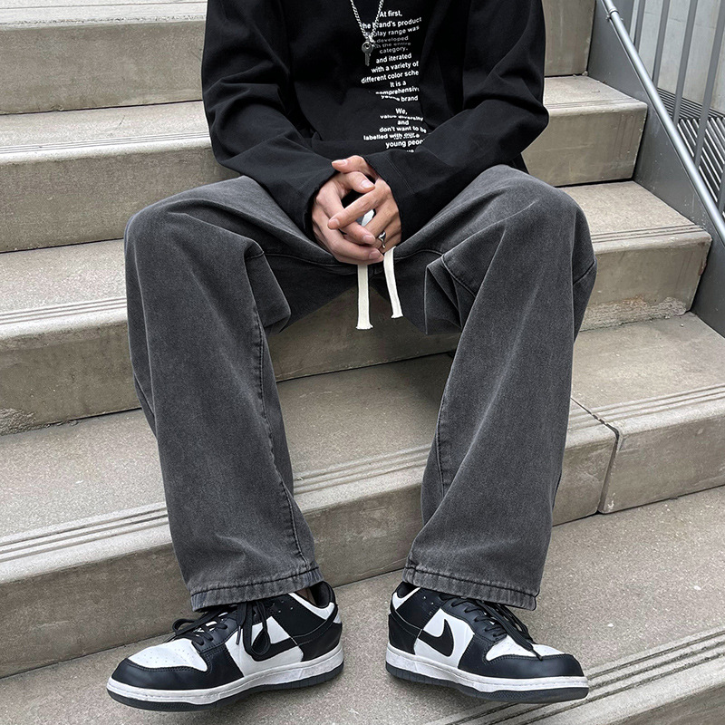 東南アジアの爆発的なレトロなジーンズ男性の夏のひもがゆるいストレートなアメリカ人男性のカジュアルなワイドパンツ