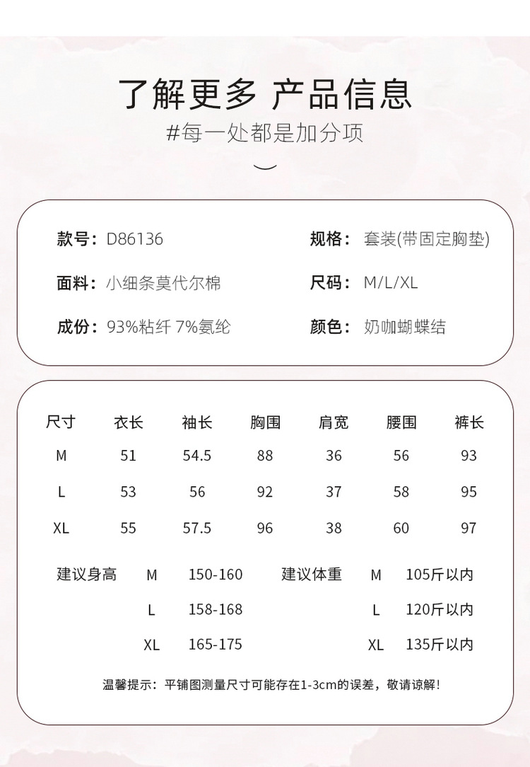喔密哒春夏莫代尔睡衣女纯欲风吊带三件套高级感家居服带胸垫套装