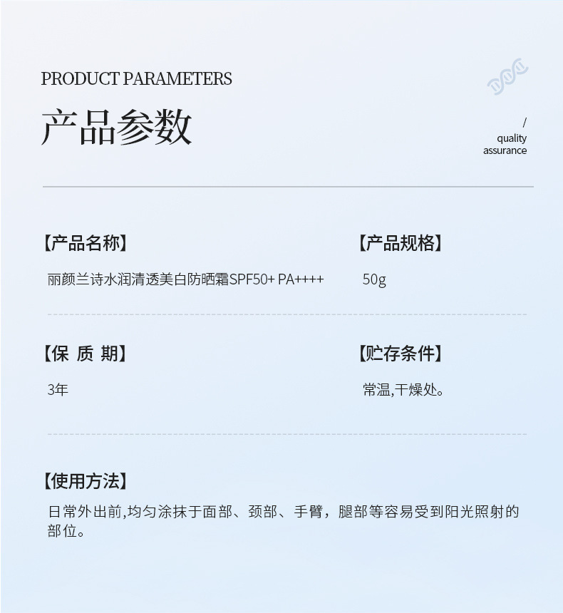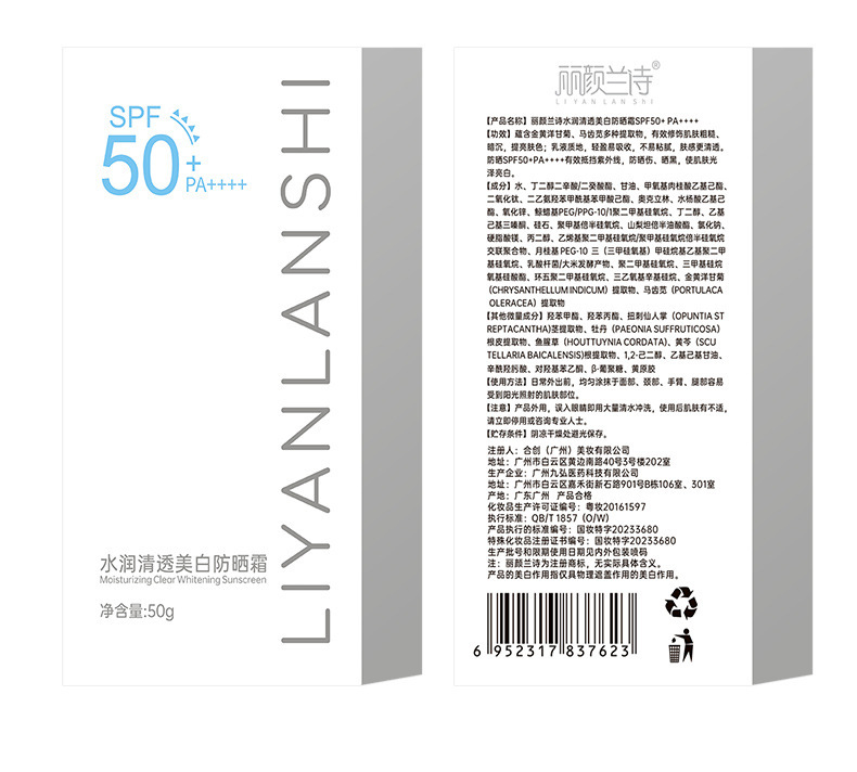 Liyan Lanshi ハイドレーティング クリア ホワイトニング 日焼け止めクリーム