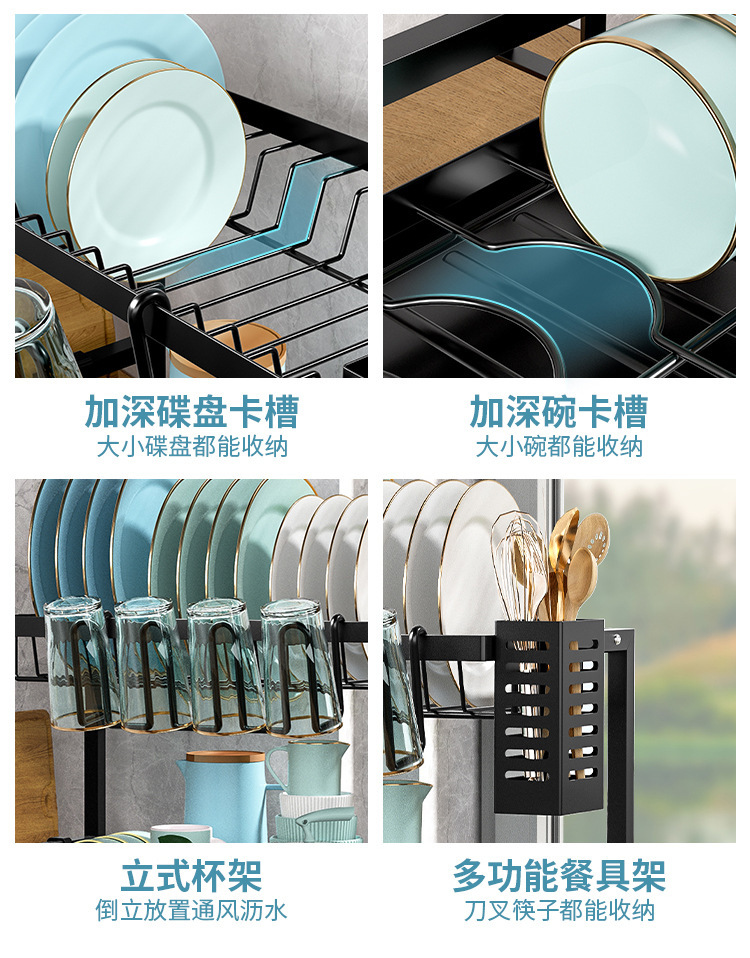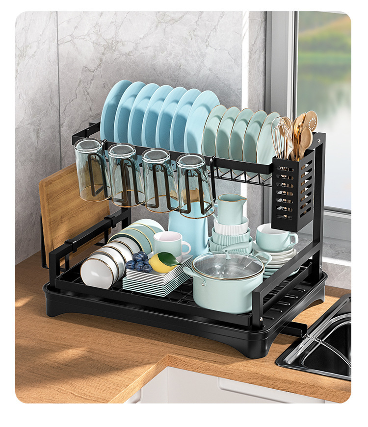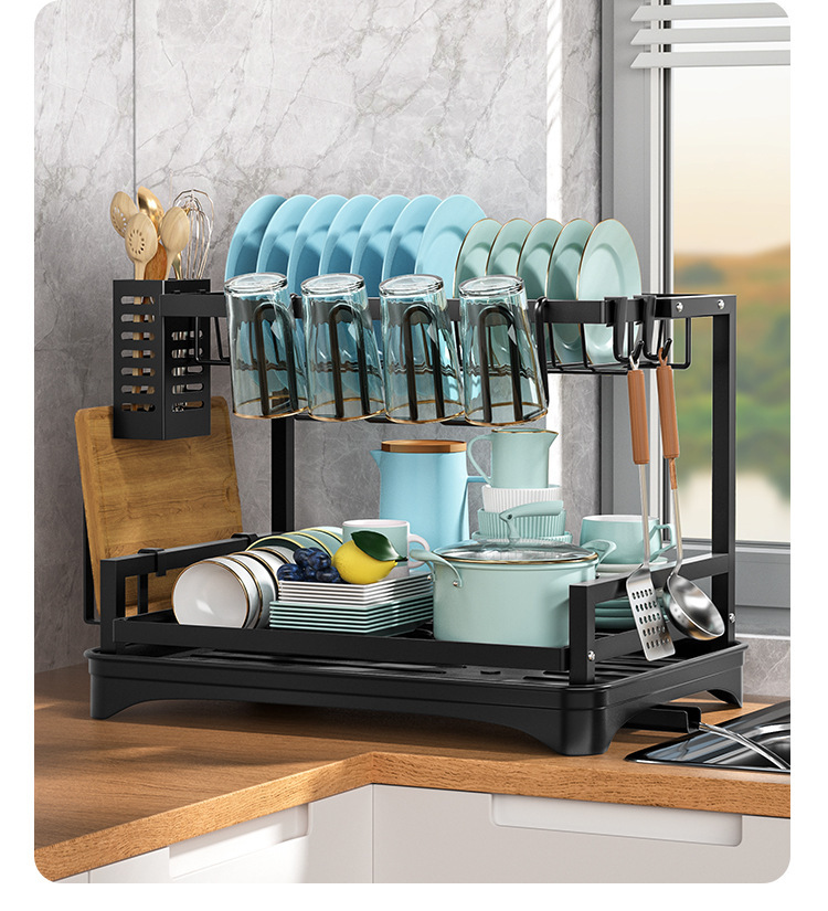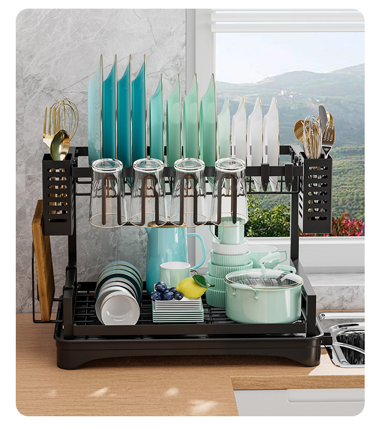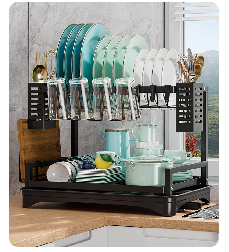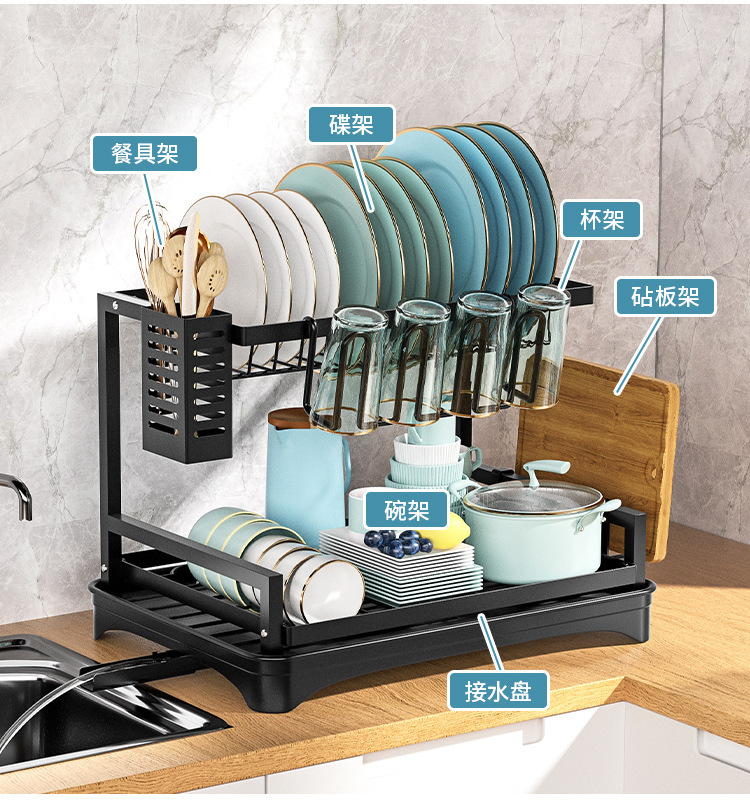 キッチン水切りラック多機能収納ラック鉄製箸立てまな板ラックカウンタートップ食器収納ラック二段式