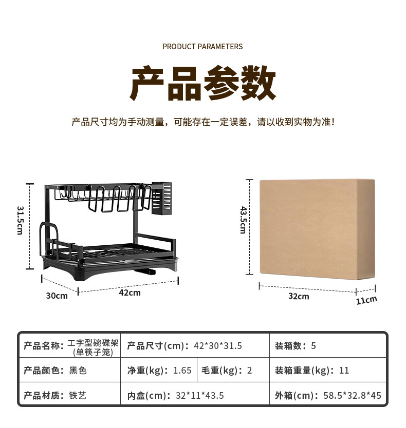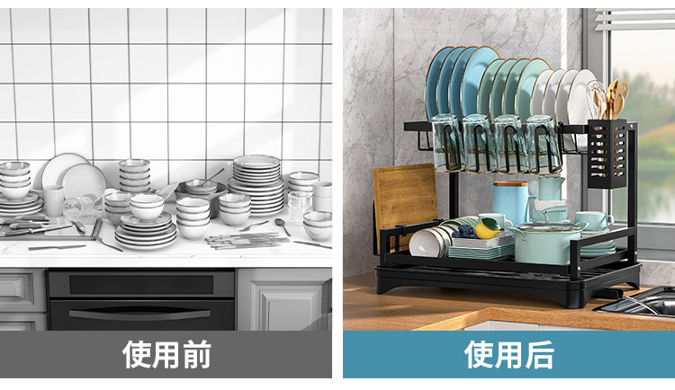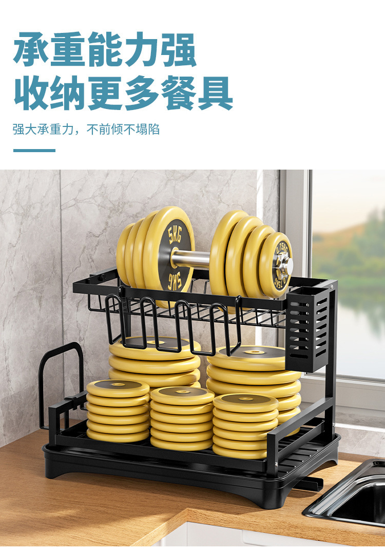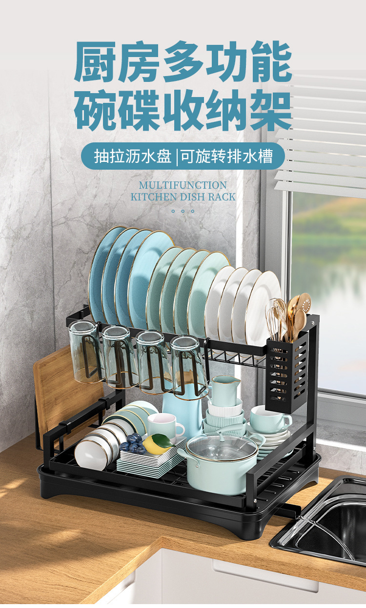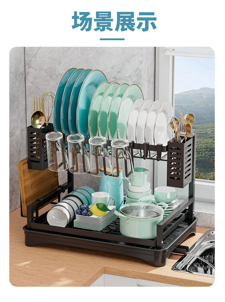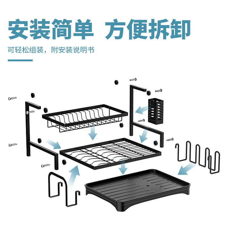 キッチン水切りラック多機能収納ラック鉄製箸立てまな板ラックカウンタートップ食器収納ラック二段式