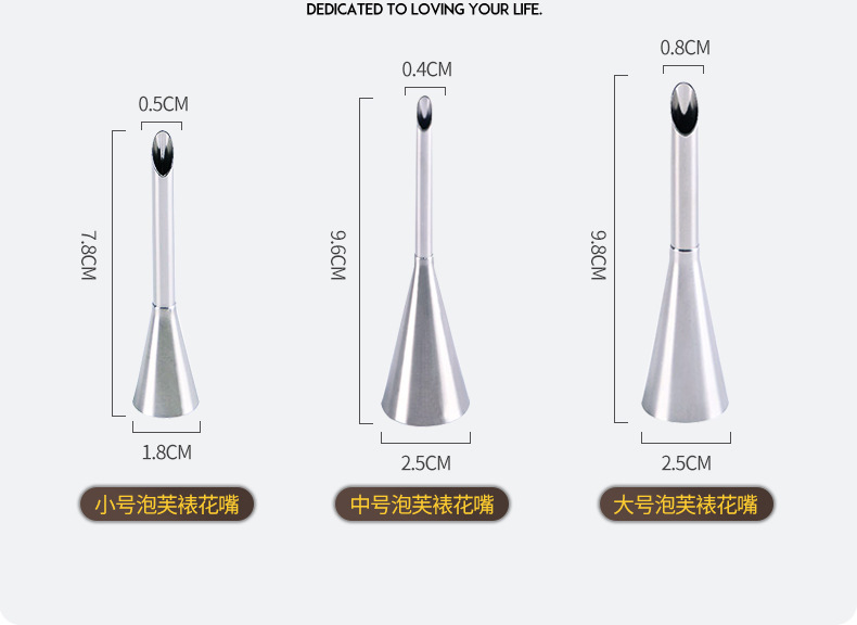 304ステンレス製のパイプ型デコレーションノズル、特殊な尖ったノズル、誕生日ケーキのクリームを絞るための家庭用ベーキングツール