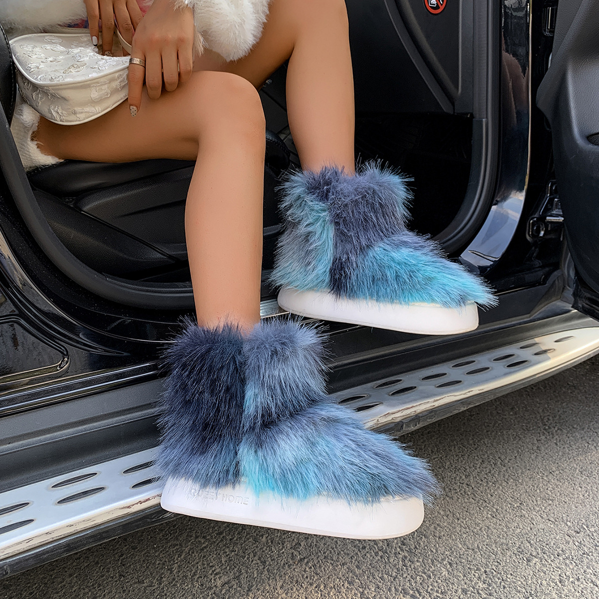 冬の貿易クロスボーダー新しい模造タヌキ毛包頭綿スリッパフラットスノーブーツ暖かい毛皮の靴女性の卸売