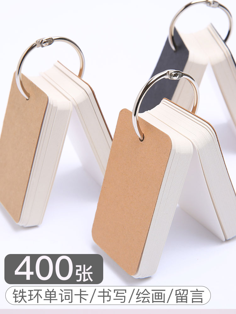 空白の小さなカード、白いハードボール紙、ポータブル英単語暗記カード、記憶リングバック手書き
