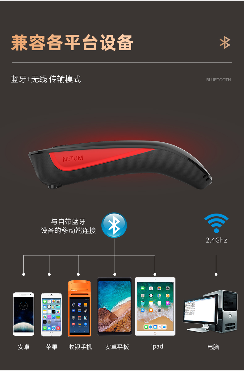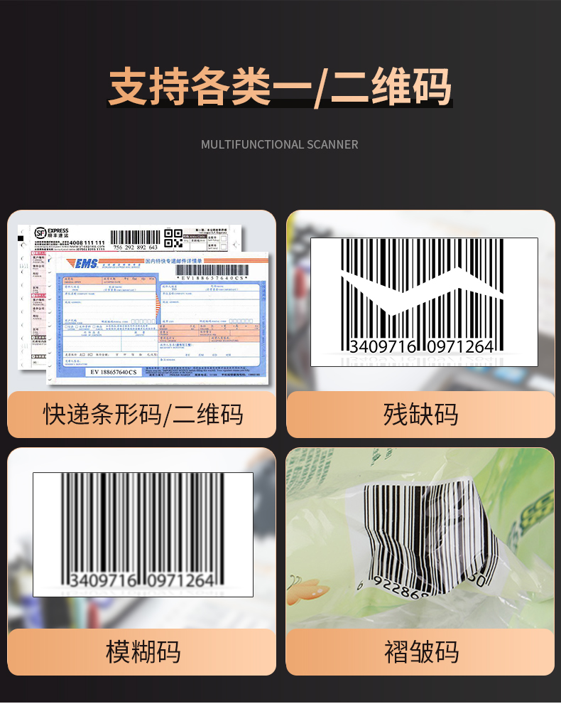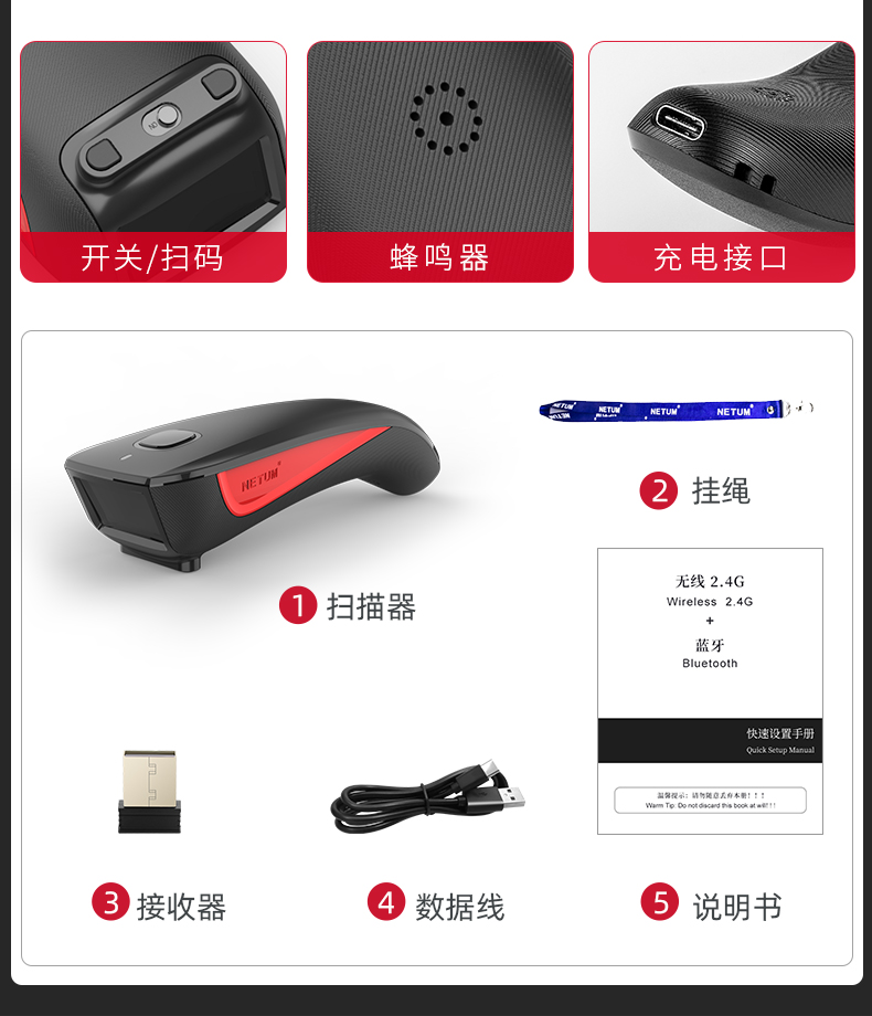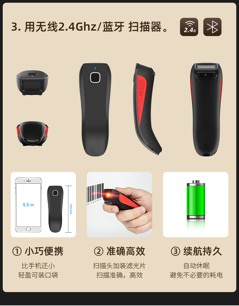 一次元コード二次元コード速達スキャンガンbluetooth無線商超スキャンガン2.4G携帯コードガン