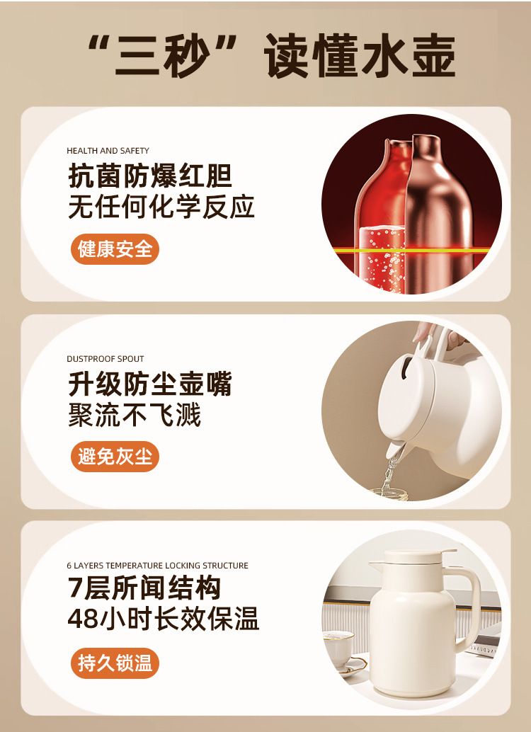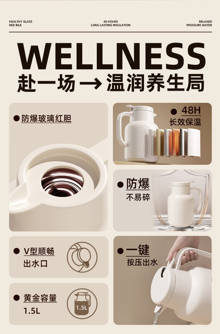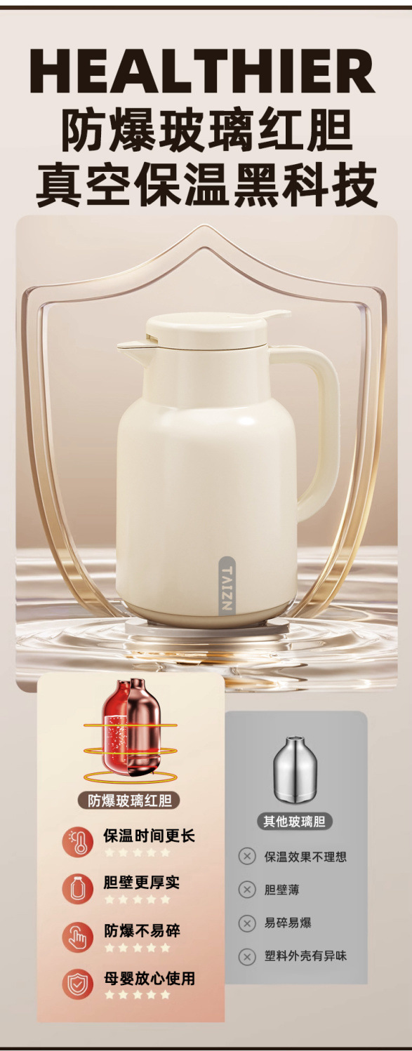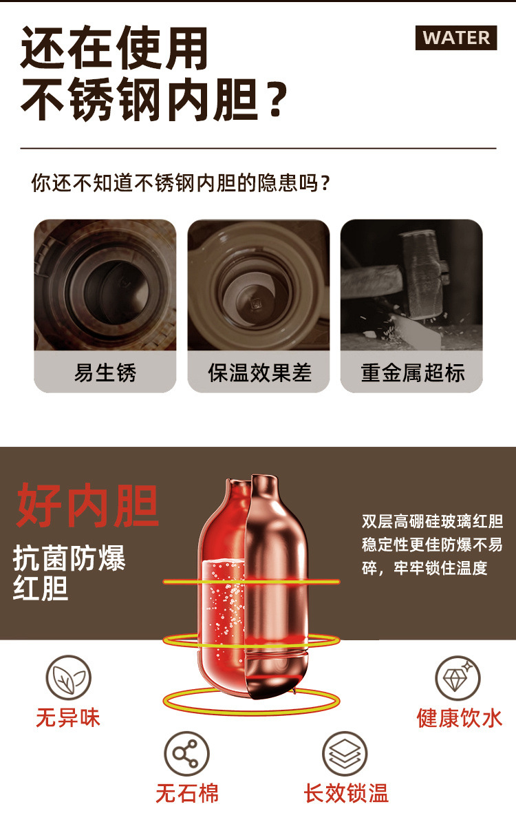 保温ポット大容量家庭用赤胆ガラス内胆保温ポット新型寮温水保温ポット