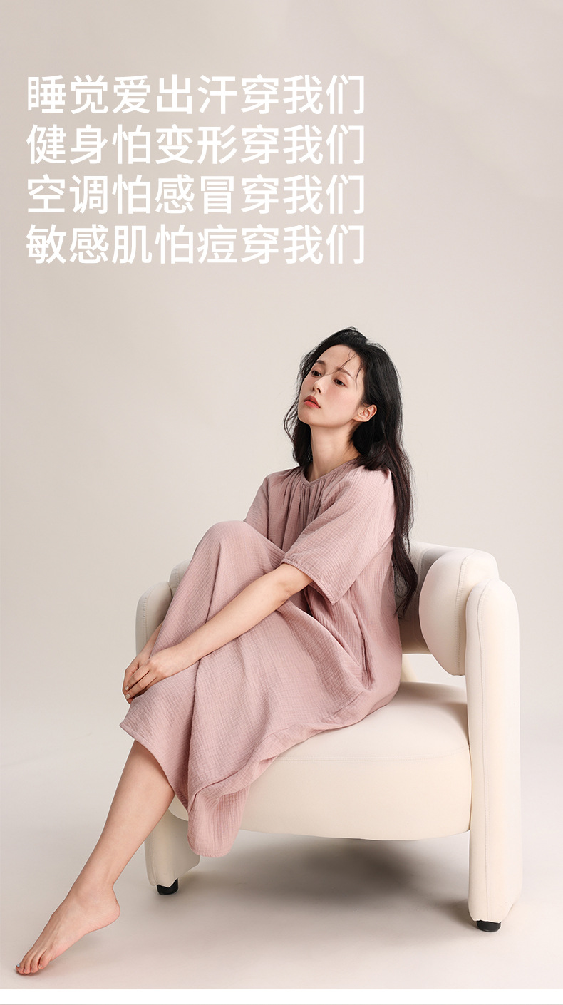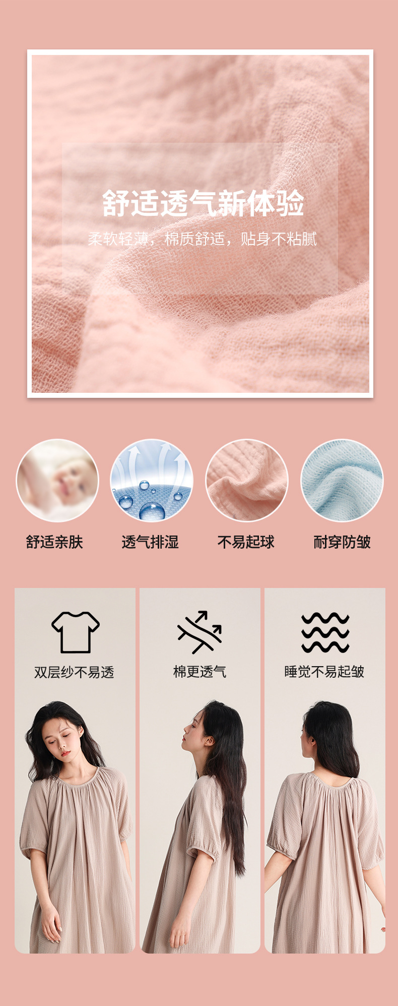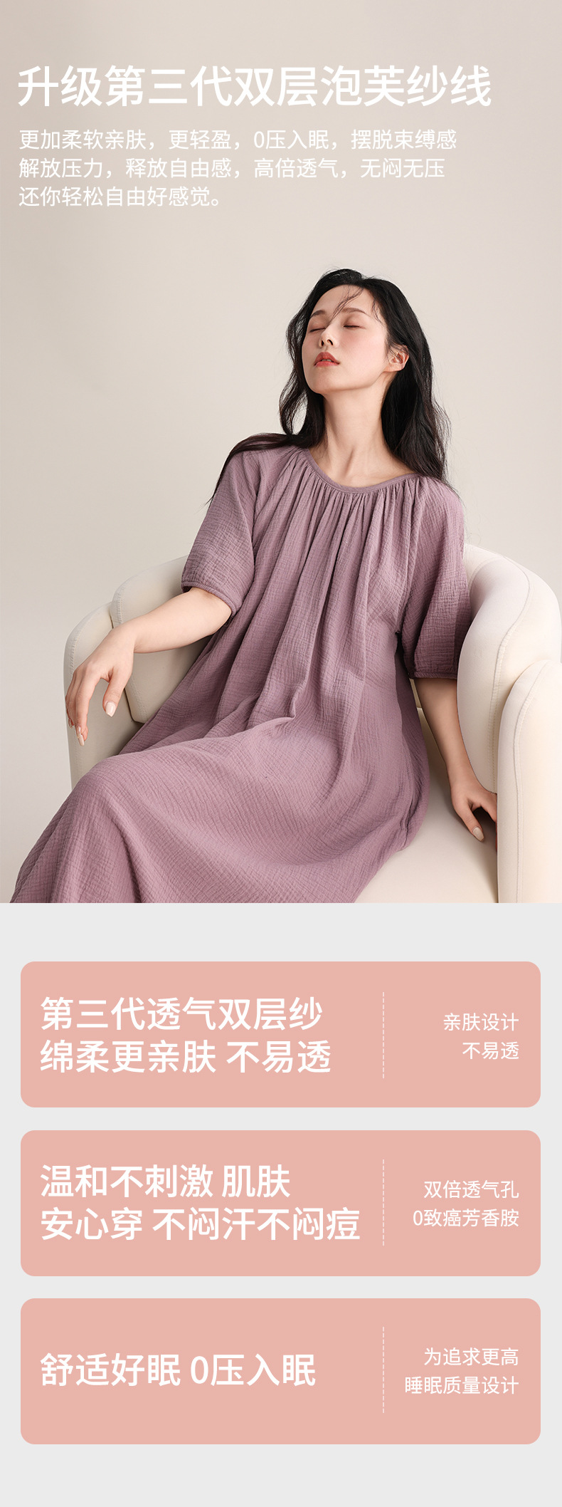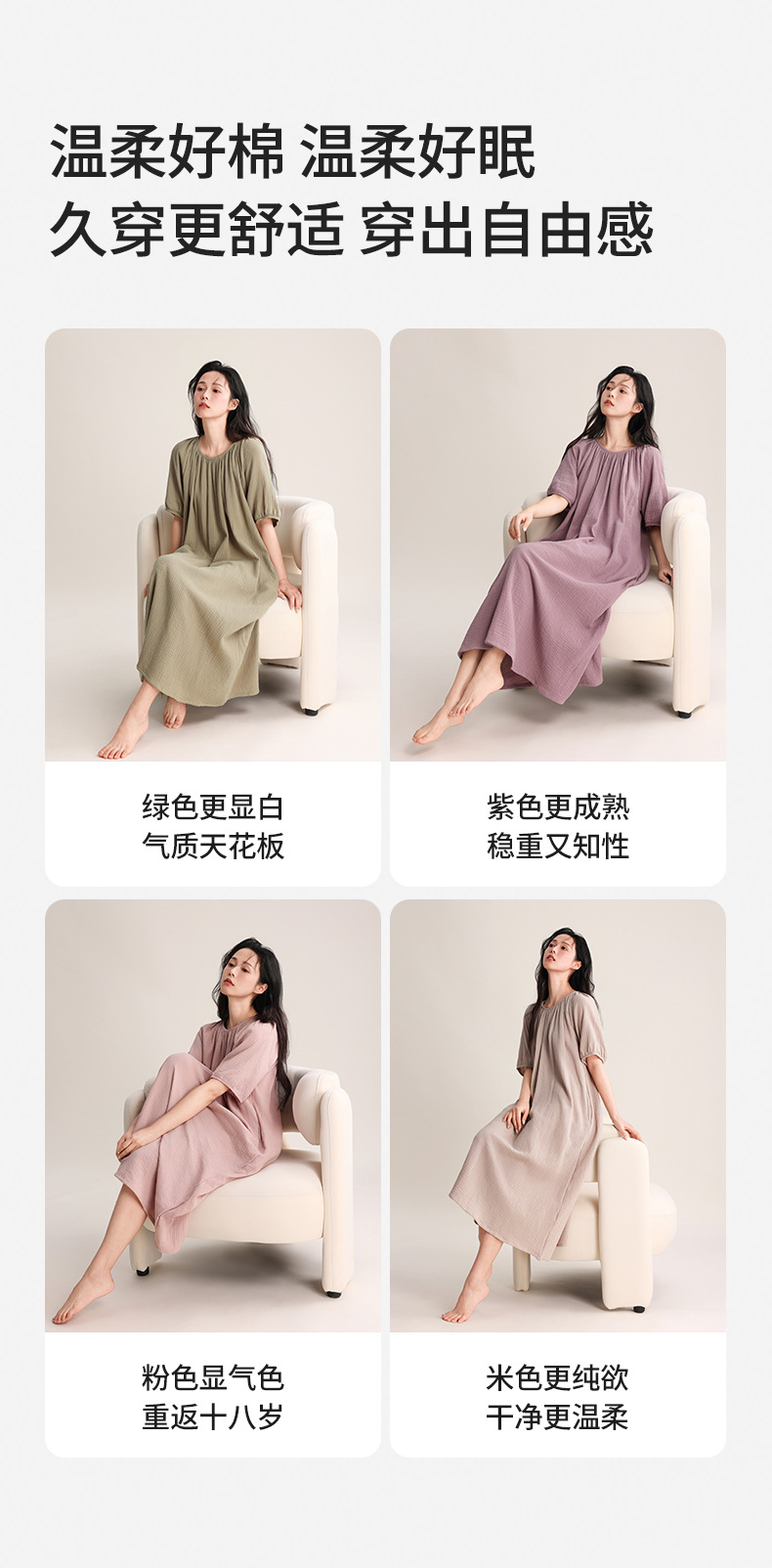 大码纯棉睡裙春秋新款双层纱布家居长裙胖mm宽松休闲裙薄款连衣裙