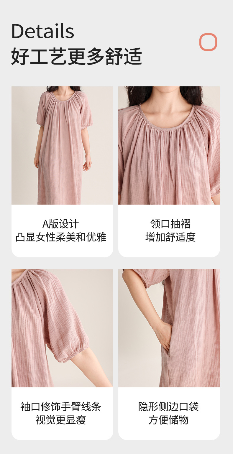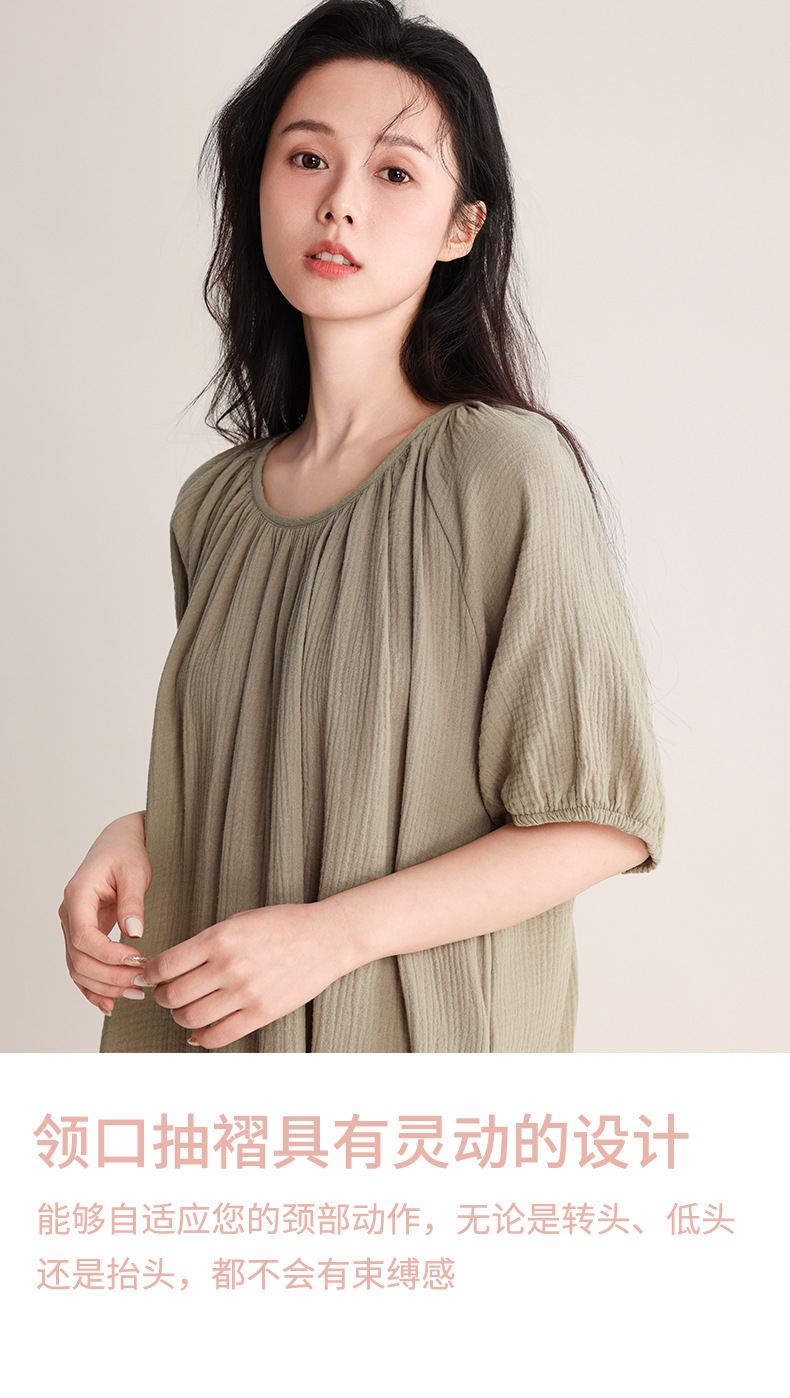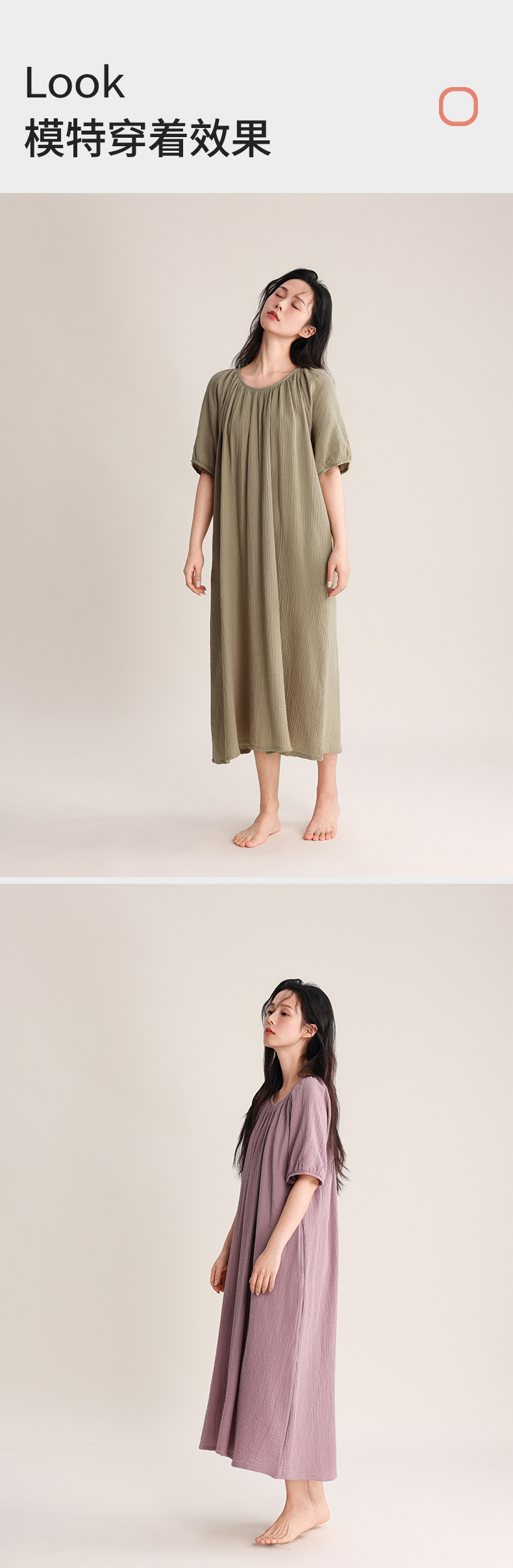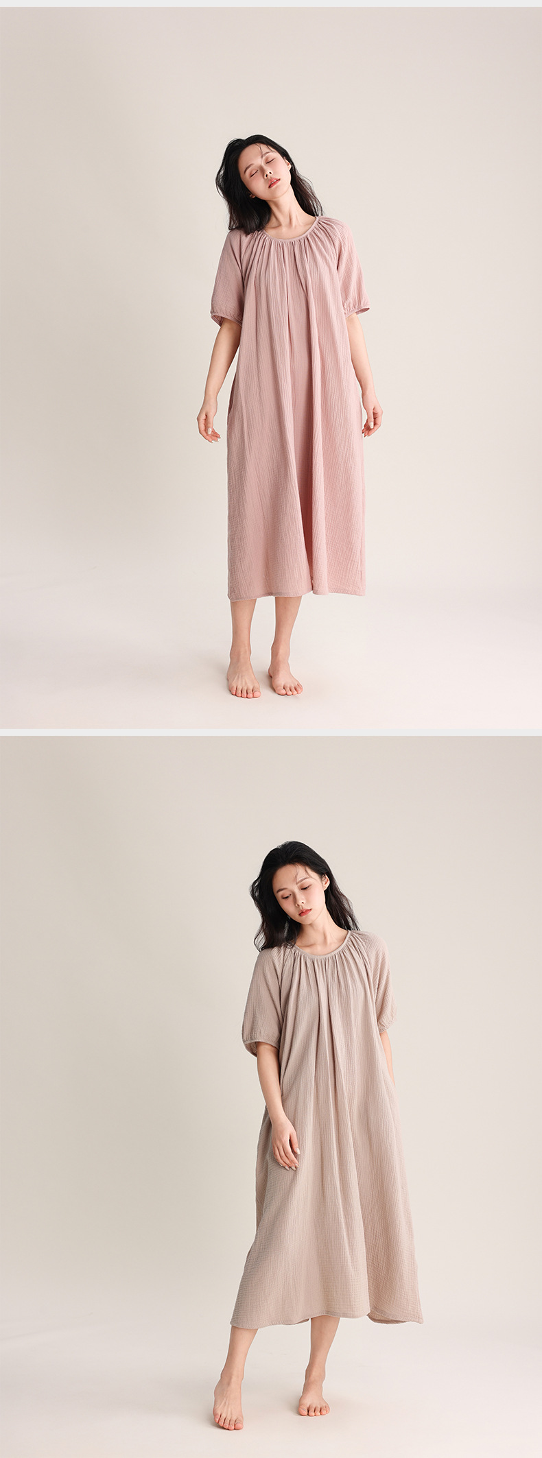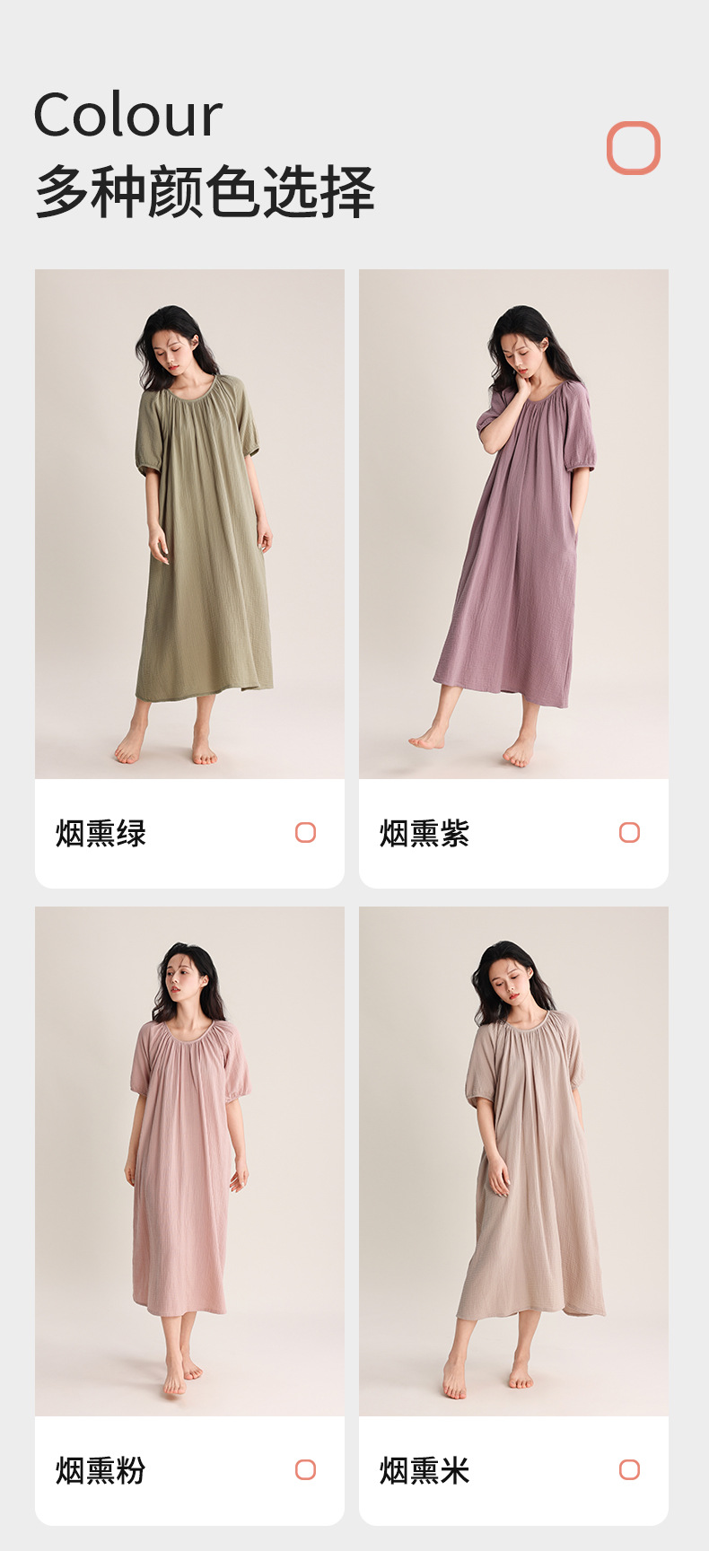 春夏の長袖純綿のクレープの寝スカートはシンプルで優雅です。