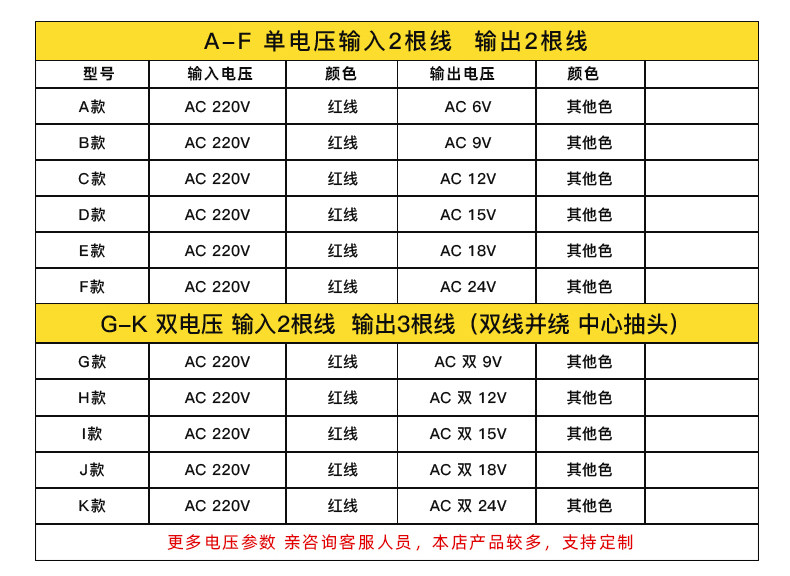 仕様 220V~6V,220V~9V,220V~12V,220V~15V,220V~18V,220V~24V,380V~6V,380V~9V,380V~12V,380V~15V,380V~18V,380V~24V,他の電圧も相談してカスタマイズできます