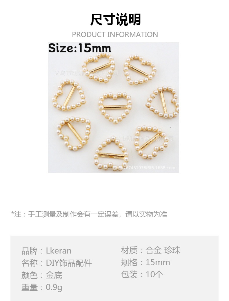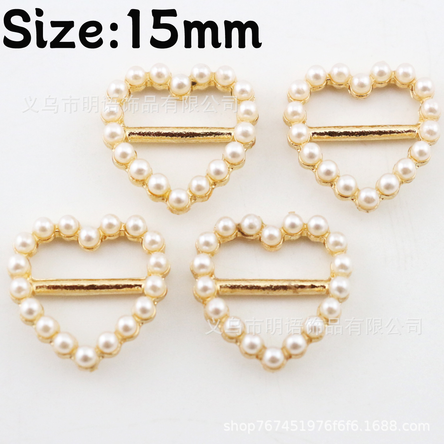 新型15mmハート型合金真珠横棒花盤ドリルボタンdiy手作り髪飾り服靴ボタンアクセサリー部品