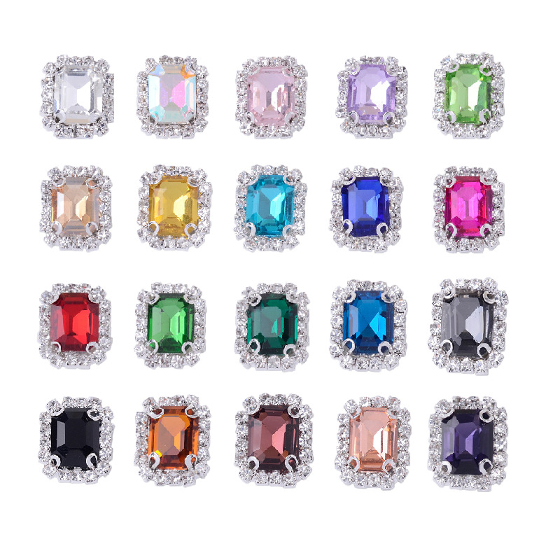 12*14MM爪链围边平底八角长方形玻璃钻扣配件diy手工发作箱包配饰