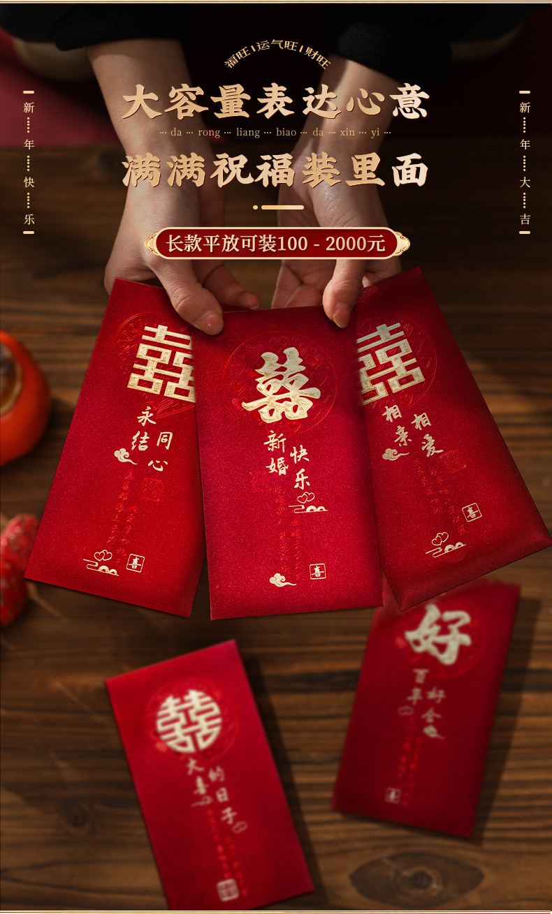 結婚式専用2026年新作お祝い用紅包、新婚祝い、呼び名変更、喜字入り、婚約祝い、クリエイティブな紅包袋