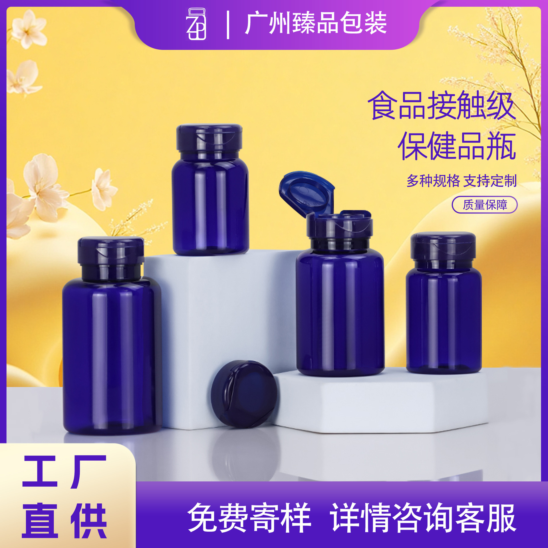 卸売りブルー固形瓶薬用petプラスチックカプセル包装瓶150ml健康食品カバー空薬瓶