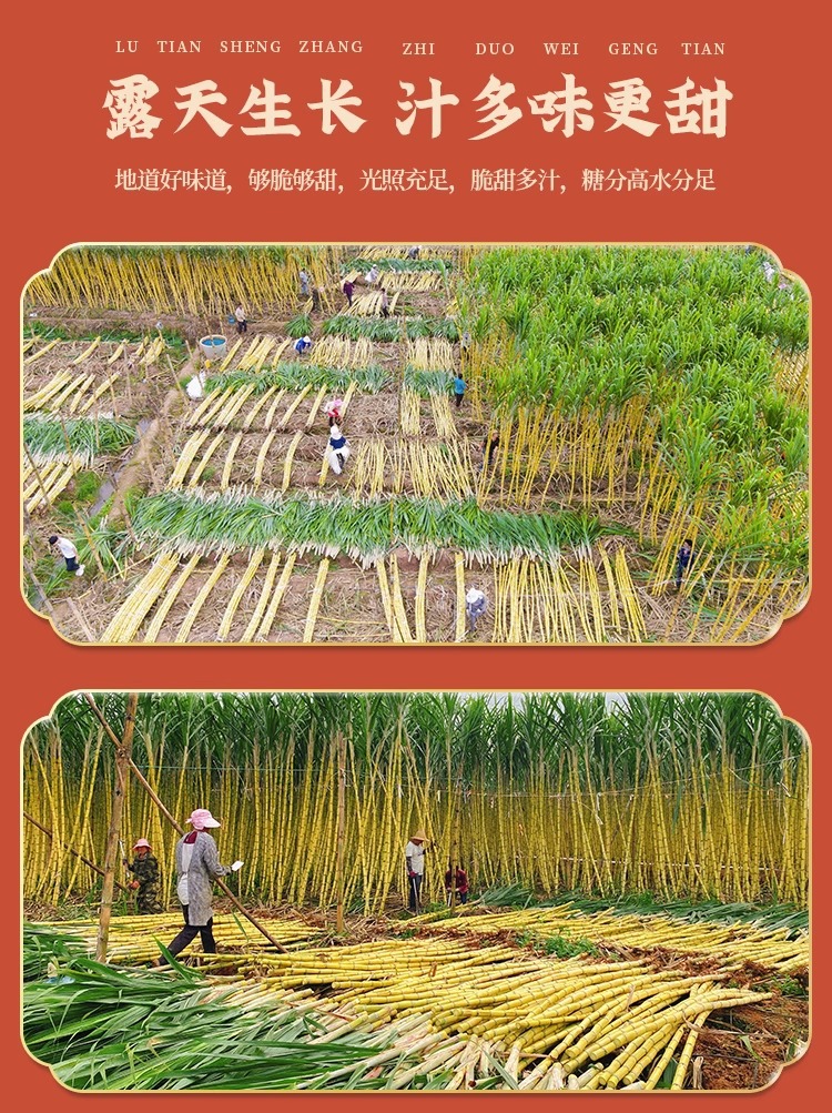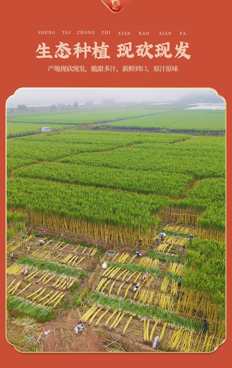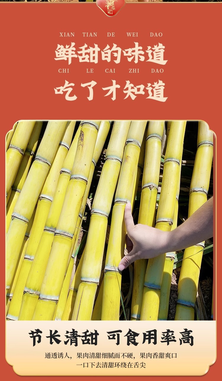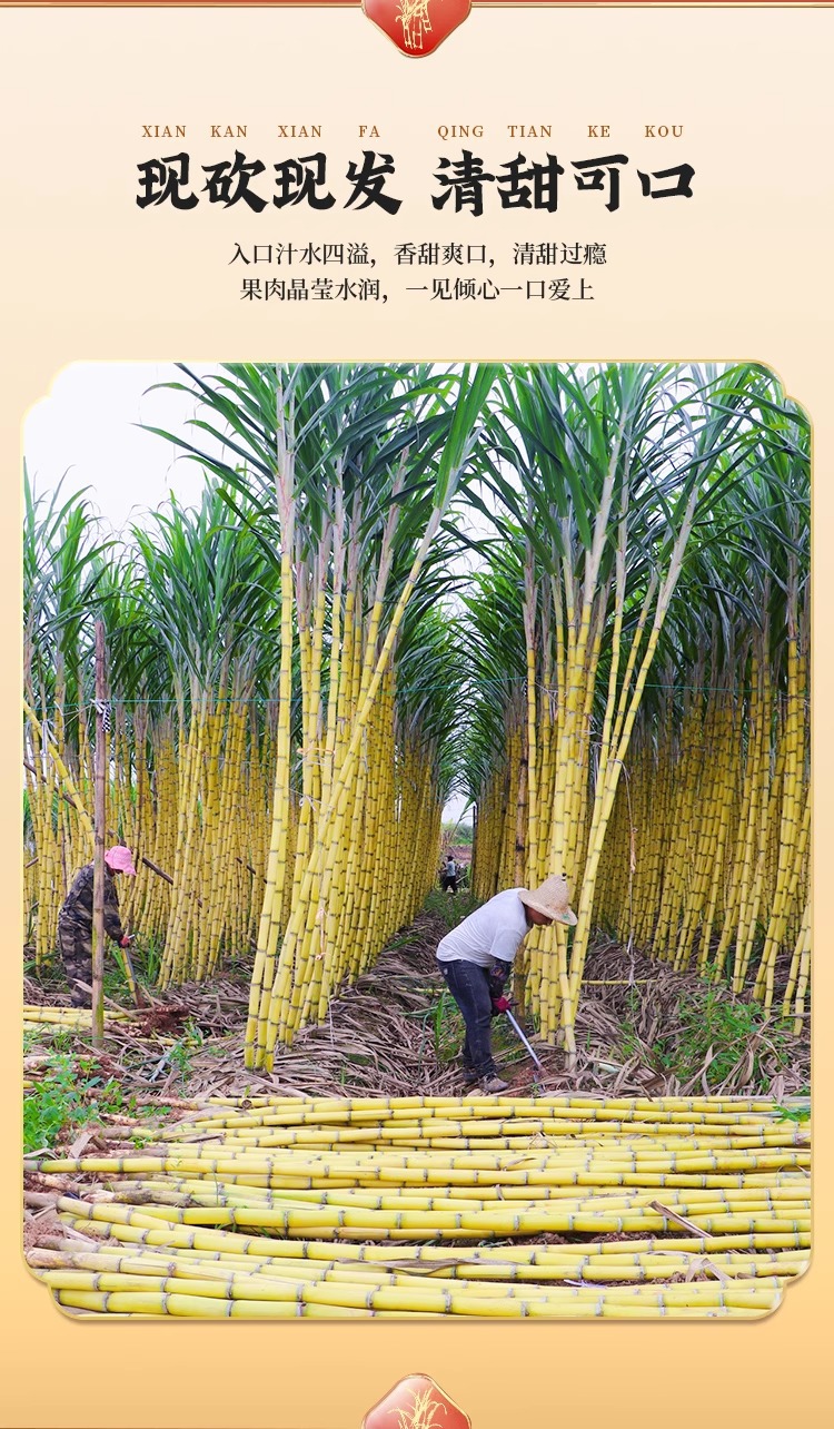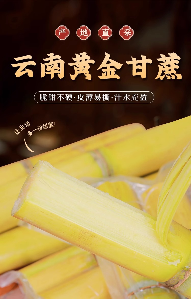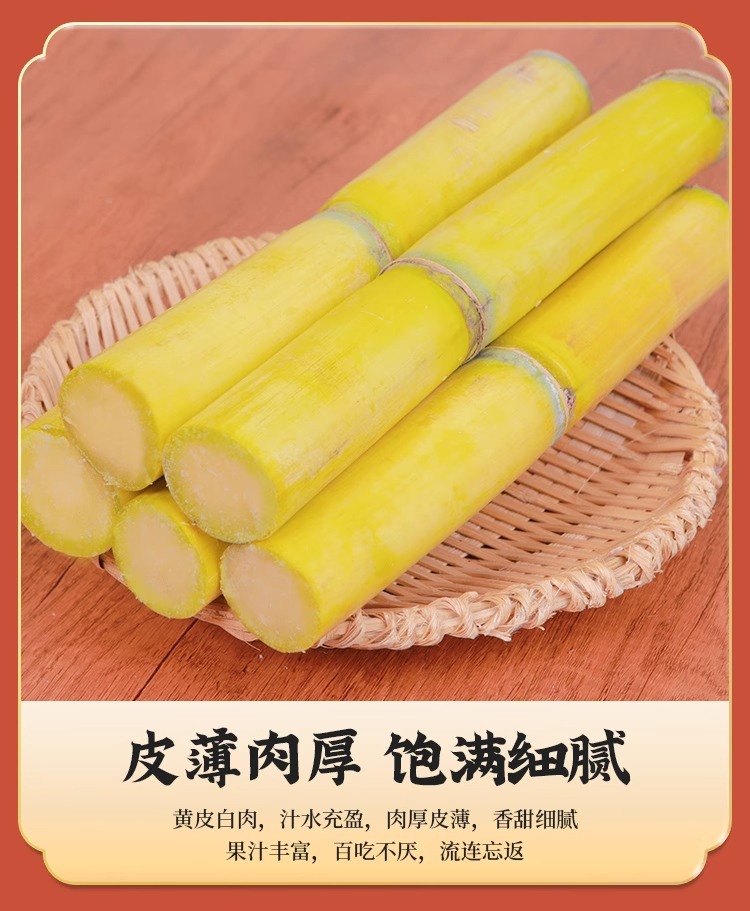 雲南産黄金サトウキビ、旬の新鮮な果物、シャキシャキとした甘い黄色い皮のサトウキビ、箱詰めで送料無料、切りたての中段黄色い皮のサトウキビ