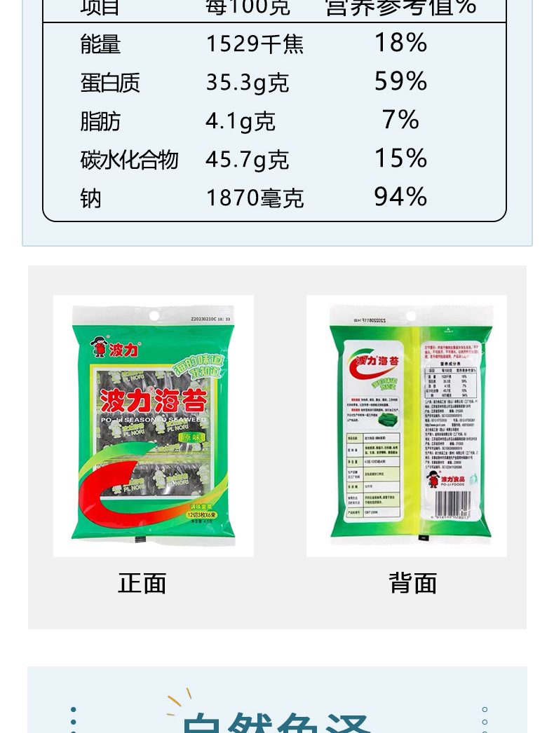 波力海苔卸売り原味4.5g海苔即食海苔間食児童海苔間食即食海苔