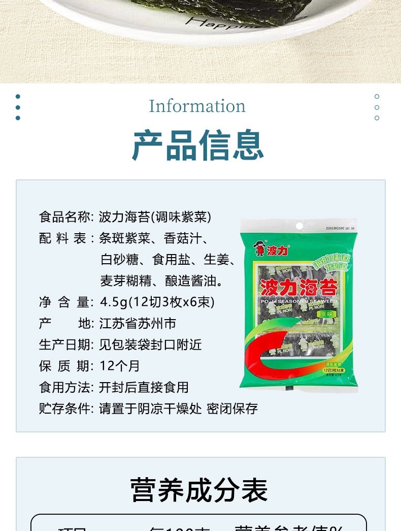 波力海苔3g/4.5g/6.7g/バッグオプション原味海苔海苔レジャー児童スナック