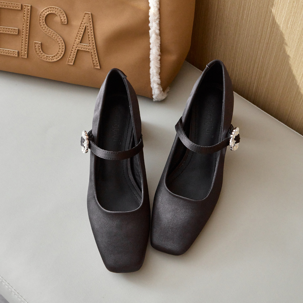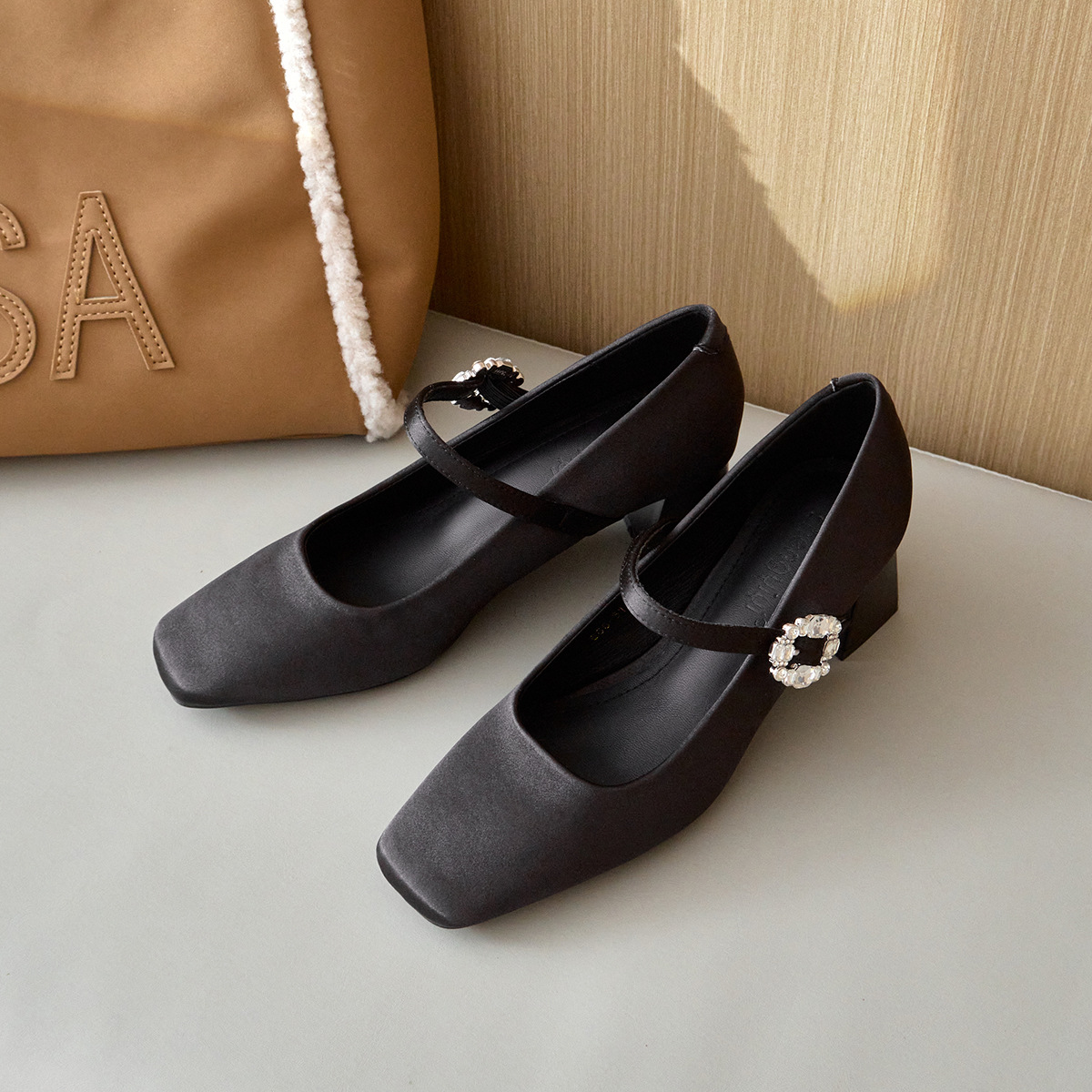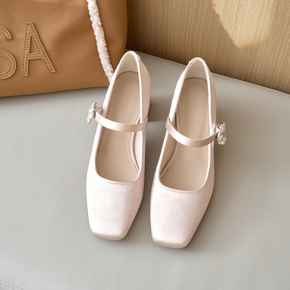 ドリルの太さと靴の女性2025春のフランス式のレトロな香りの新型の方の頭のシルクの浅い口の1字は靴の女性を持ちます。