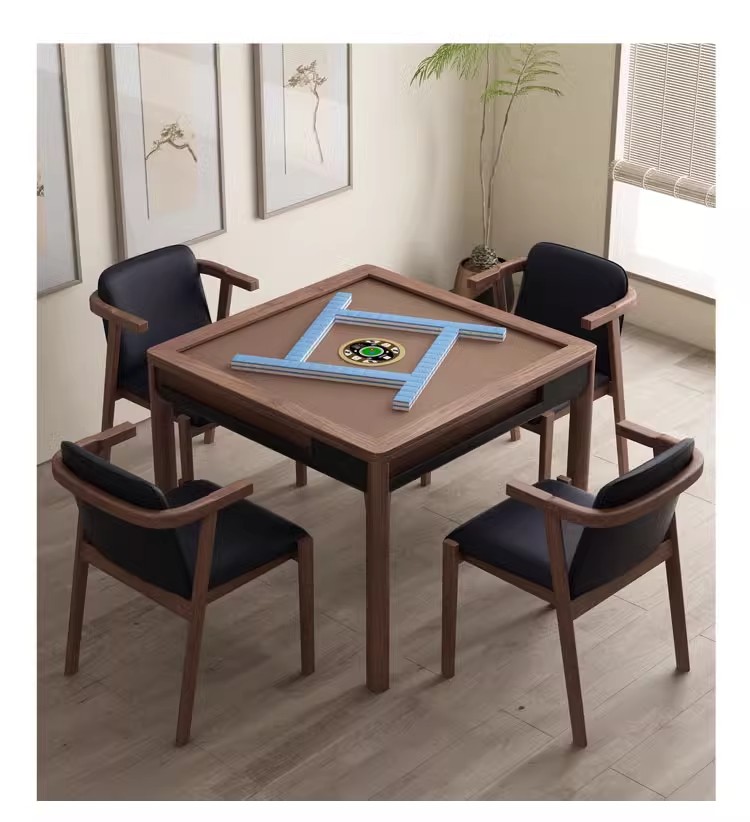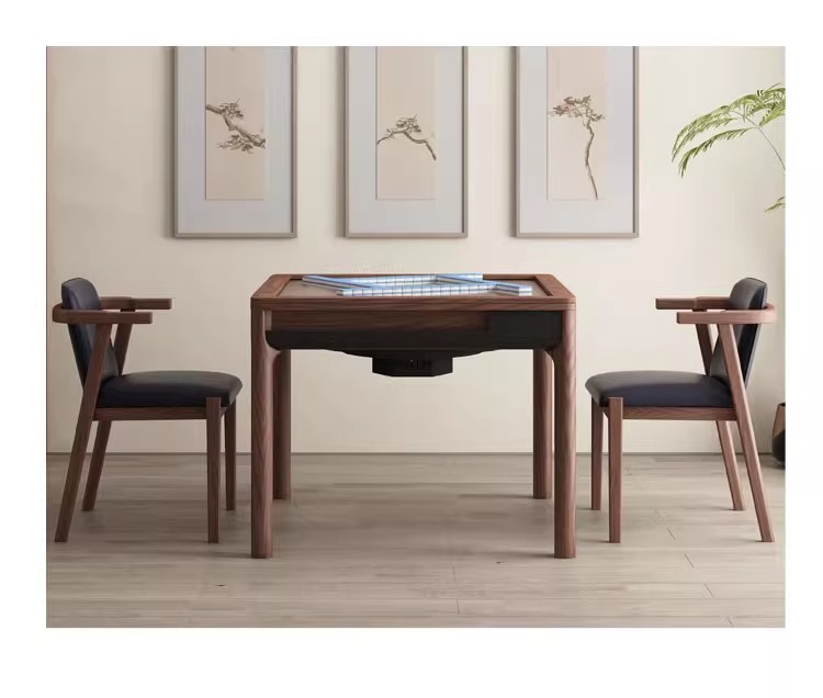 北米黒胡桃木麻将卓静音両用実木蓋付き将棋テーブル自動家庭用電動麻将機