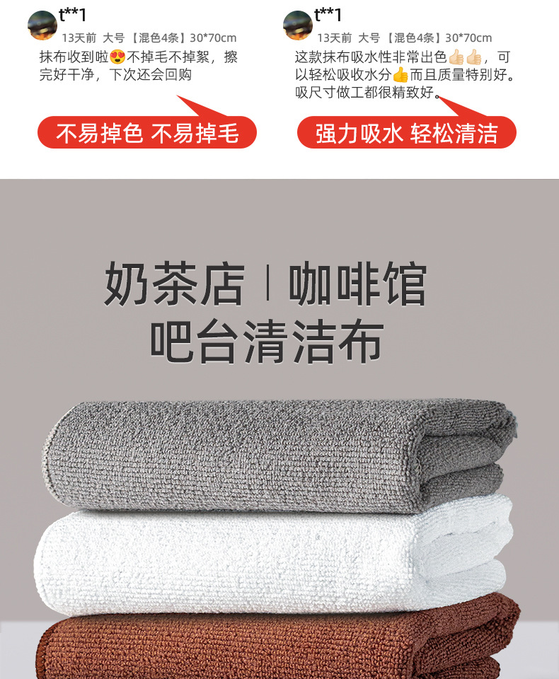 ミルクティー店の雑巾は吸水して毛が生えにくい台所の飲食店の白いコーヒーの商用清潔なバーのタオル