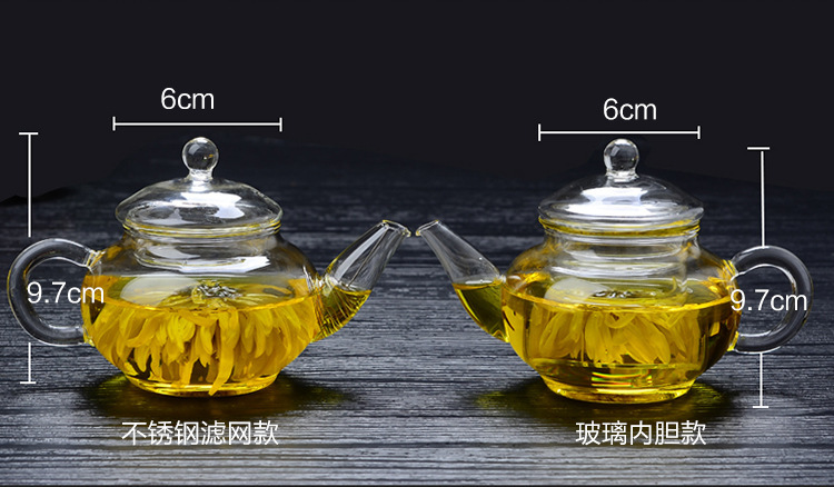 高ホウケイ酸塩耐熱ガラスティーポットステンレス鋼フィルターフラワーティーポット茶水分離沸騰ティーポット