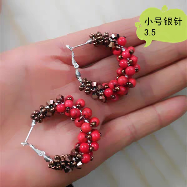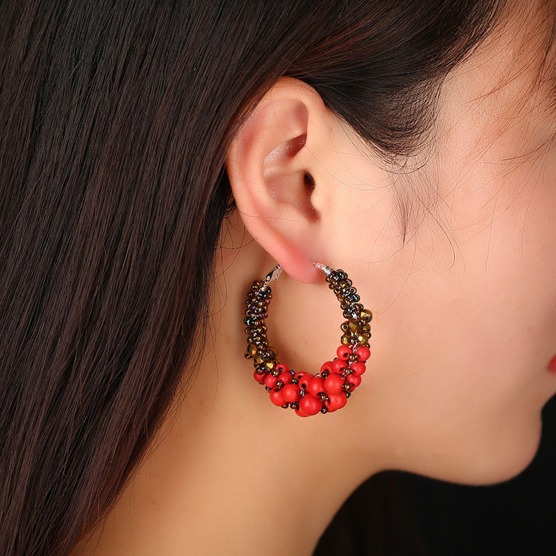 s925シルバーフックイヤリング、クロスボーダー新作、トレンディでファッショナブルな純手編み巻き付け個性的な大振りイヤリング、ラウンド型